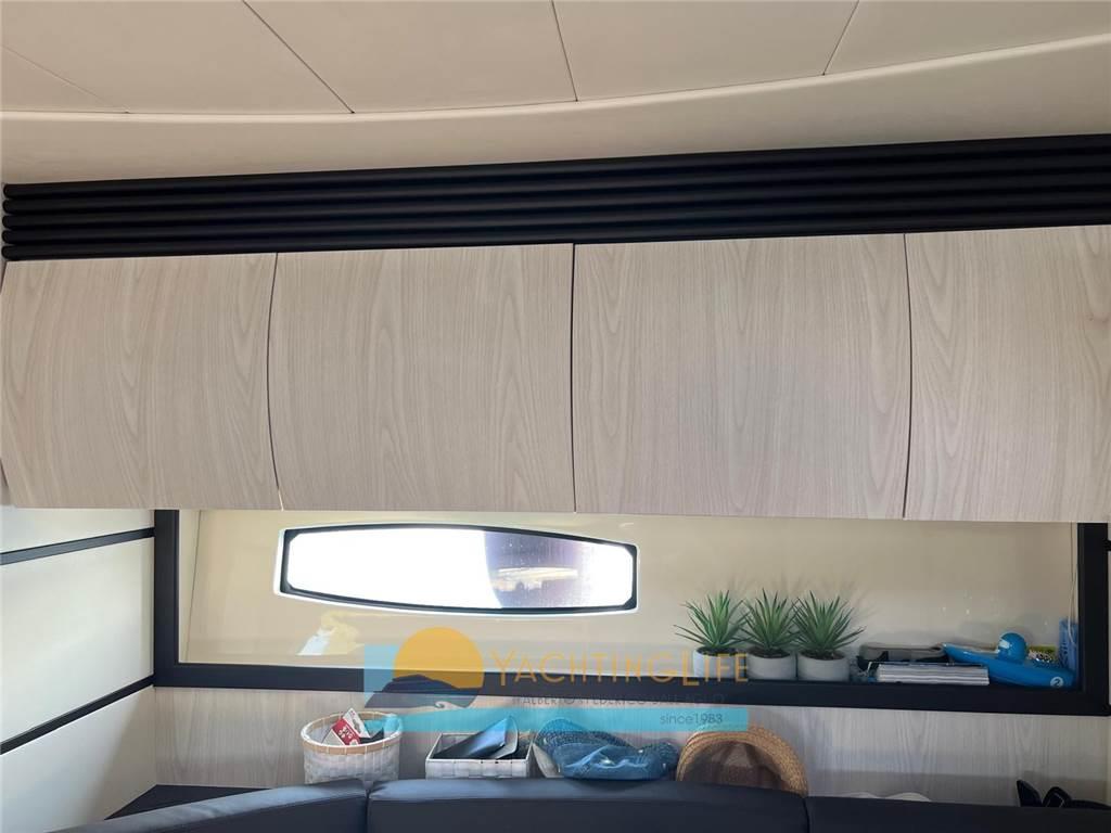 Notas de armamentoAltoparlanti, Antenna Satellitare TV, Boiler, Cappottina (Chiusura di poppa nuova), 3 Clima reversibile (1 interni e 2 pozzetto), Copripozzetto, Cucina, Cuscineria completa (Nuova), Decoder satellite, Dimmer per Luci, Dissalatore (240 lt/h Idromar), Dotazioni di sicurezza entro 50 miglia, Frigorifero esterno, Frigorifero interno, Home Theater (Bose 7.2 2023), Impianto acque nere, Impianto TV (50" in salone), Inverter, Microonde, Piastra in vetroceramica, Prese interne 12v, Prese interne 220v, Serbatoio Acque Nere, Stereo (Fusion), Telecamera (Infrarossi sala macchine), TV, WC marino elettrico, Winecooler (Nuovo)