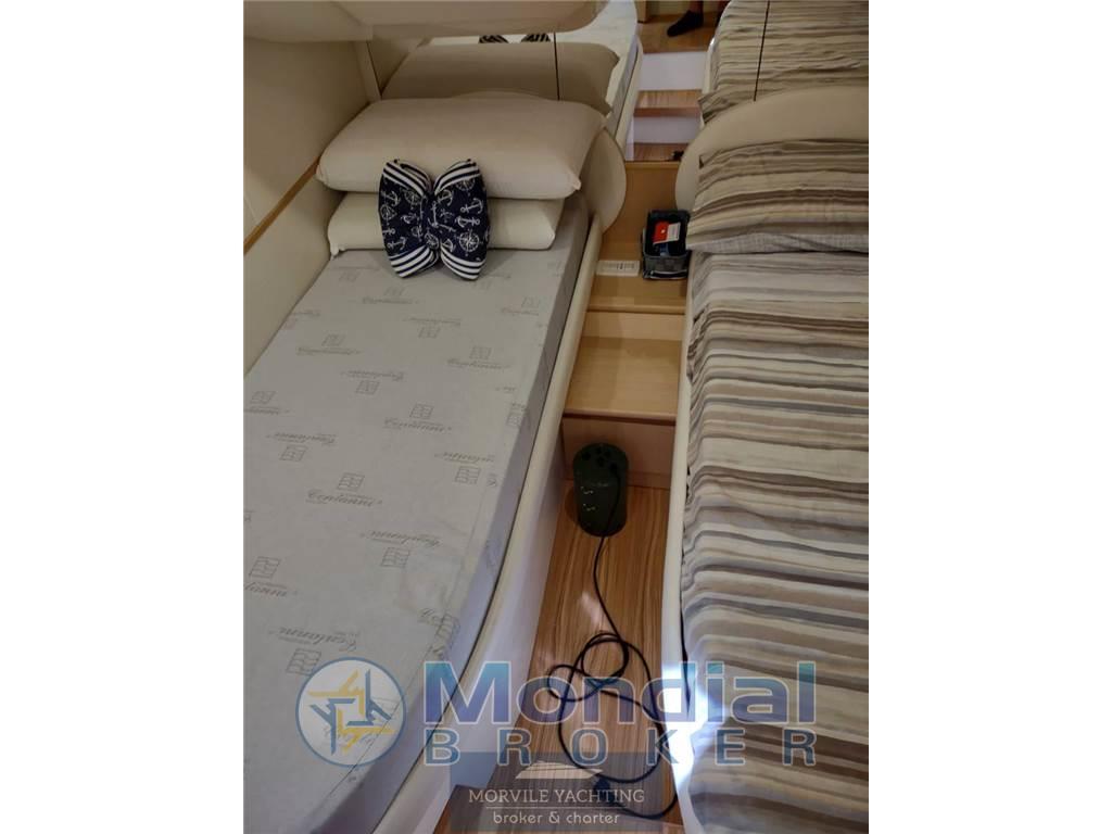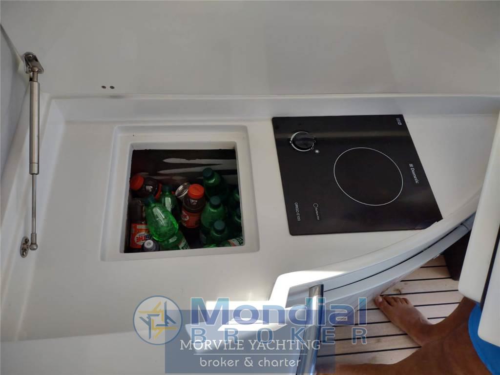 Notas internasCabine: 3 Toilette: 2 Cabine: 3 Notas de la instrumentaciónImpianto elettronico- Ecoscandaglio - Log-contamiglia - Computer di bordo - Impianto TV: ANTENNA TV SAT - Centrale di navigazione - Plotter - Lettore DVD - Pilota automatico - Radio - Bussola - Lettore CD - GPS - Altoparlanti di pozzetto - VHF Notas de armamentoCoperture/Tendalini- Tendalino pozzetto Equipaggiamenti Elettrici - Presa corrente a terra - Generatore - Inverter Equipaggiamenti interni - Elica di prua - Pompa di sentina elettrica - Forno - Pompa di sentina manuale - Microonde - WC marino - Aria condizionata - WC elettrico - Riscaldamento - Acqua calda - Frigorifero - Congelatore - Caricabatterie Dotazioni Esterne - Pozzetto in teak - Doccia pozzetto - Passerella idraulica - Autogonfiabile - Cuscineria pozzetto - Tavolo pozzetto - Scaletta bagno Cuscineria Frigorifero esterno Scaletta: 1 Tavolo nel pozzetto |