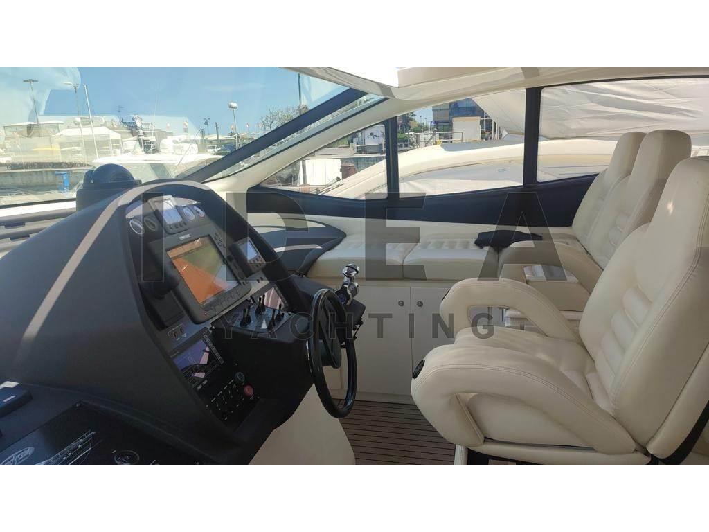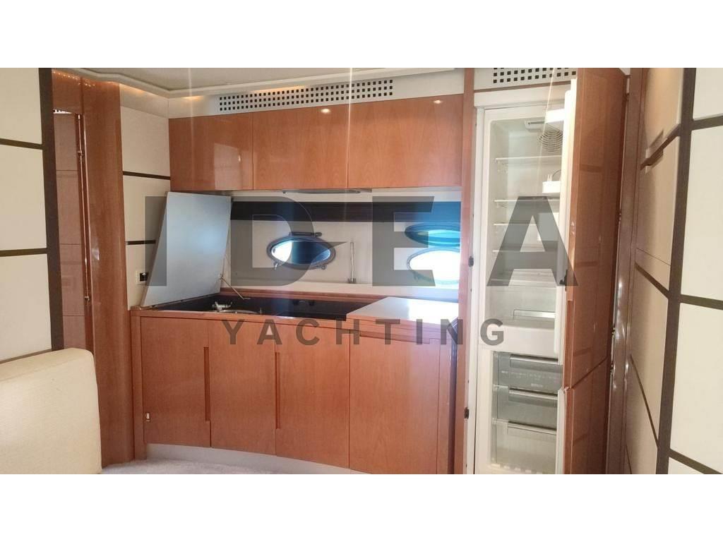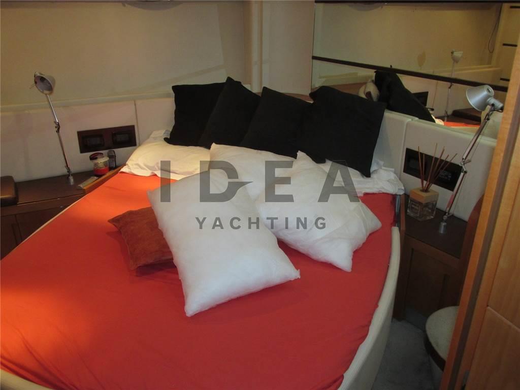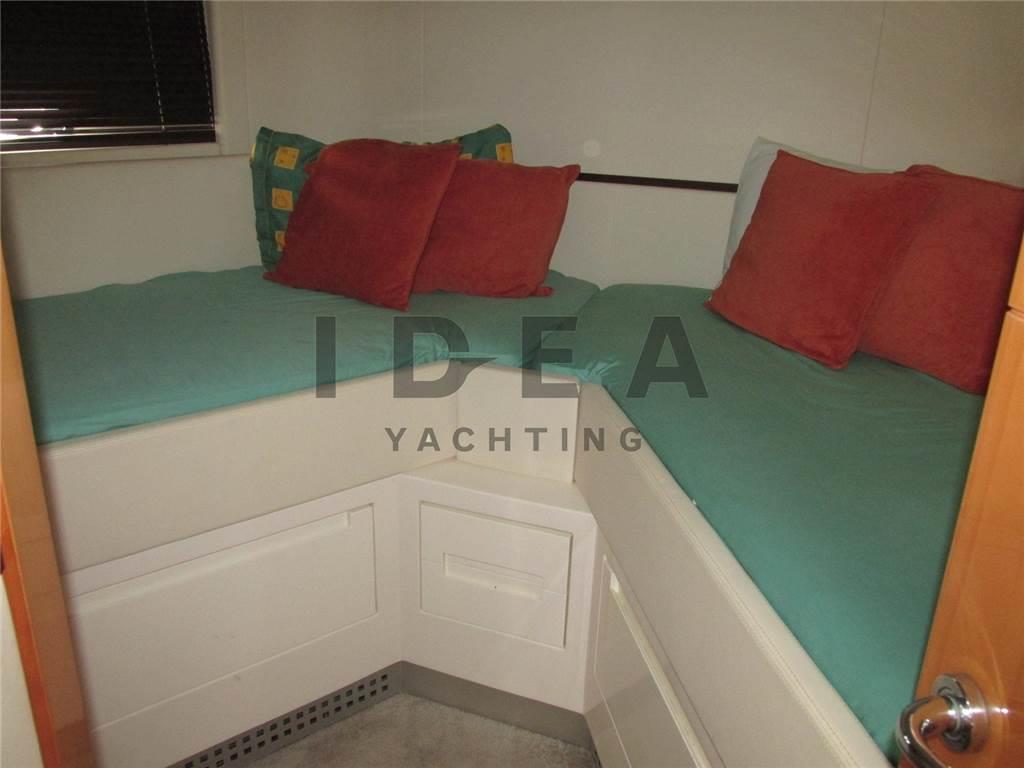 Notas internasCabina armatoriale ensuite Cabina VIP ensuite Cabina ospiti con due letti in piano ensuite Notas de la instrumentaciónAngolo barra, Antenna radar, Bussola, Comando motori elettronico, Contamiglia, DSC vhf, Ecoscandaglio (Raymarine), GPS, Log, Pilota automatico (Raymarine), Plotter (Raymarine E120), Radar, Radio VHF (Simrad), Sedile Copilota.Notas de armamentoAllestimento tecnico e di coperta:Allarme fumo/gas, Allarme motore, Allarme sentina, Ancora, Caricabatterie (Mastervolt), Doccia esterna, Elica di poppa - stern thruster, Elica di prua - bow thruster, Garage per tender, Gruette per tender, Impianto antincendio, Lavandino nel Pozzetto, Passerella, Piattaforma, Pompa di sentina automatica, Pompa di sentina elettrica, Pompa di sentina manuale, Porta ingresso, Pozzetto Teak, Presa 220V banchina, Salpa Ancore Elettrico, Scaletta da bagno (Electric), Tavolo pozzetto (Telescopic), Tavolo Salone Abbattibile, Tromba, Winch Elettrico, 2 Winch tonneggio di poppa, Winch tonneggio di prua. Dotazioni domestiche di bordo: Aria condizionata (in all the cabins), BBQ/ Grill, Clima reversibile, Impianto acque nere, Pavimento interno in legno (In the main deck), Prese interne 220v, Riscaldamento, Serbatoio Acque Nere, Telecamera, WC marino elettrico. Intrattenimento: Altoparlanti, Antenna Satellitare TV, Decoder satellite, Digitale Terrestre, Impianto TV, Meccanismo saliscendi per TV, Radio AM/FM, Stereo, TV. Cucina ed elettrodomestici: Cucina, Frigorifero esterno, Frigorifero interno, Lavastoviglie, Microonde, Piastra elettrica. Tappezzerie: Cuscineria completa, Cuscineria di poppa, Cuscineria di prua, Cuscineria Pozzetto. |
