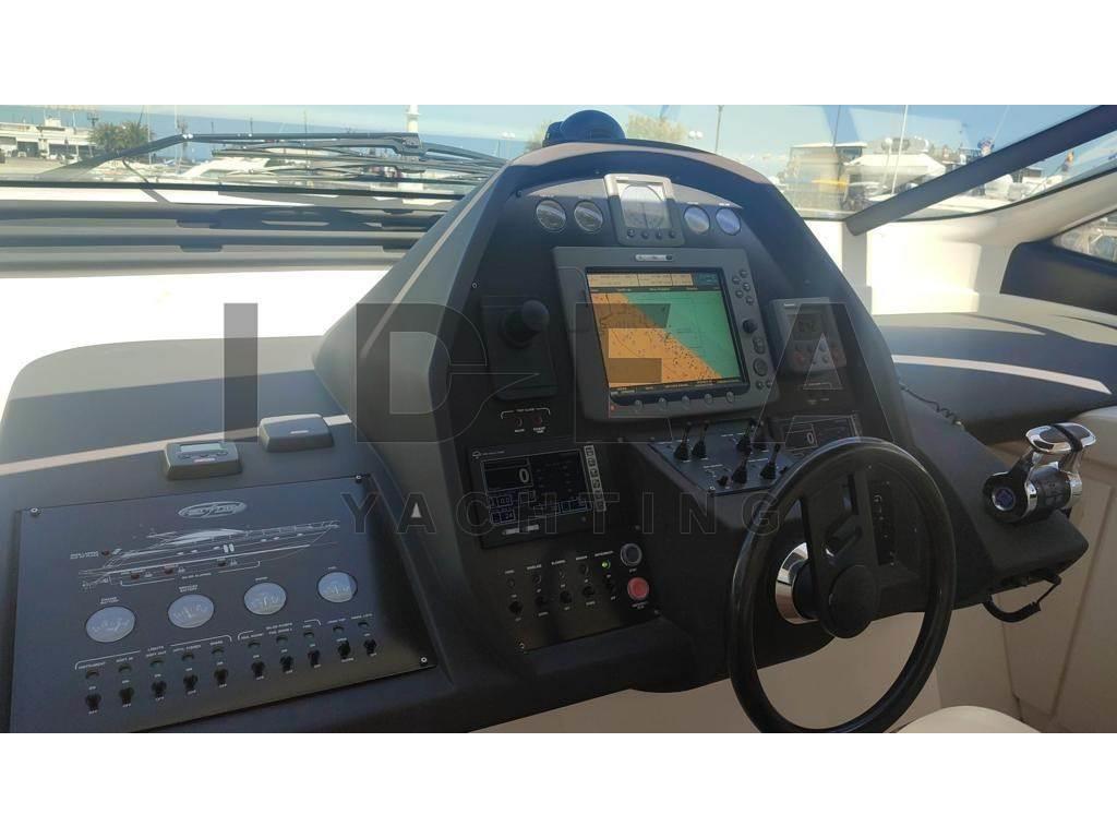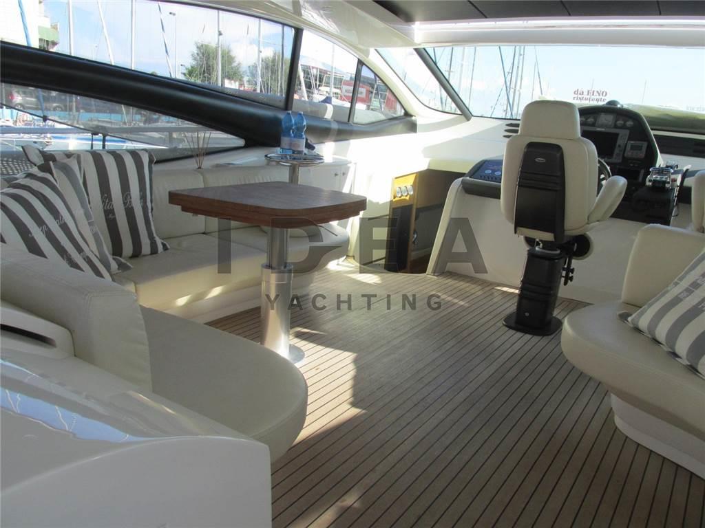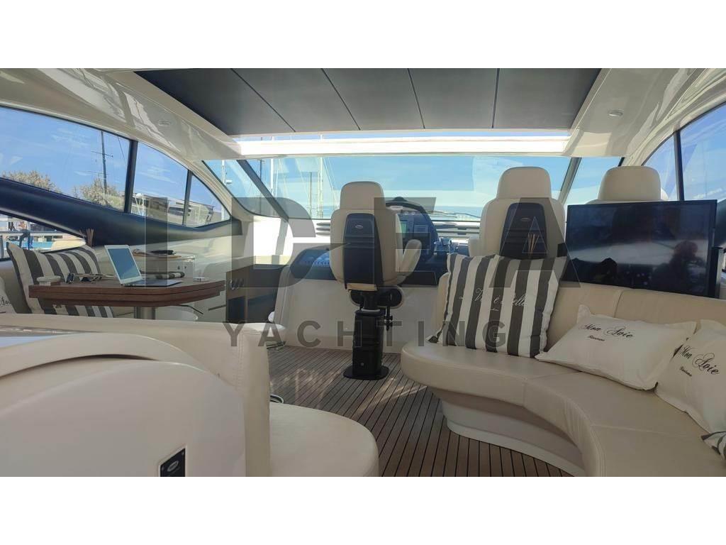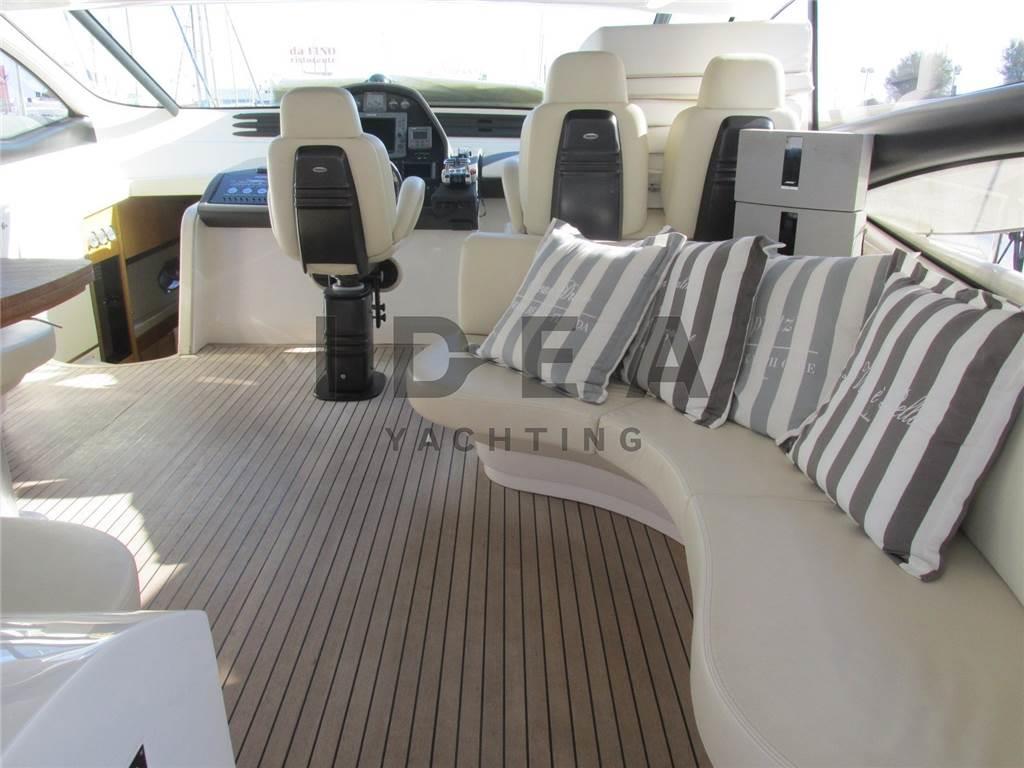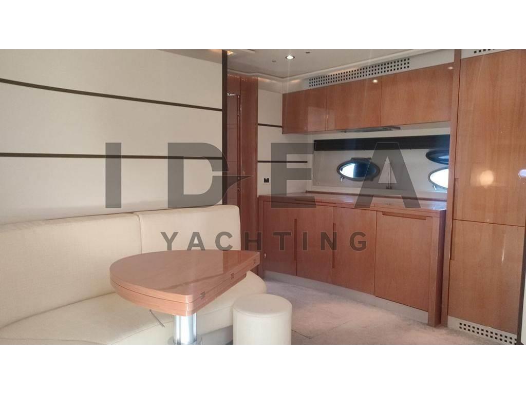 Notas internasCabina armatoriale ensuite Cabina VIP ensuite Cabina ospiti con due letti in piano ensuite Notas de la instrumentaciónAngolo barra, Antenna radar, Bussola, Comando motori elettronico, Contamiglia, DSC vhf, Ecoscandaglio (Raymarine), GPS, Log, Pilota automatico (Raymarine), Plotter (Raymarine E120), Radar, Radio VHF (Simrad), Sedile Copilota.Notas de armamentoAllestimento tecnico e di coperta:Allarme fumo/gas, Allarme motore, Allarme sentina, Ancora, Caricabatterie (Mastervolt), Doccia esterna, Elica di poppa - stern thruster, Elica di prua - bow thruster, Garage per tender, Gruette per tender, Impianto antincendio, Lavandino nel Pozzetto, Passerella, Piattaforma, Pompa di sentina automatica, Pompa di sentina elettrica, Pompa di sentina manuale, Porta ingresso, Pozzetto Teak, Presa 220V banchina, Salpa Ancore Elettrico, Scaletta da bagno (Electric), Tavolo pozzetto (Telescopic), Tavolo Salone Abbattibile, Tromba, Winch Elettrico, 2 Winch tonneggio di poppa, Winch tonneggio di prua. Dotazioni domestiche di bordo: Aria condizionata (in all the cabins), BBQ/ Grill, Clima reversibile, Impianto acque nere, Pavimento interno in legno (In the main deck), Prese interne 220v, Riscaldamento, Serbatoio Acque Nere, Telecamera, WC marino elettrico. Intrattenimento: Altoparlanti, Antenna Satellitare TV, Decoder satellite, Digitale Terrestre, Impianto TV, Meccanismo saliscendi per TV, Radio AM/FM, Stereo, TV. Cucina ed elettrodomestici: Cucina, Frigorifero esterno, Frigorifero interno, Lavastoviglie, Microonde, Piastra elettrica. Tappezzerie: Cuscineria completa, Cuscineria di poppa, Cuscineria di prua, Cuscineria Pozzetto. |