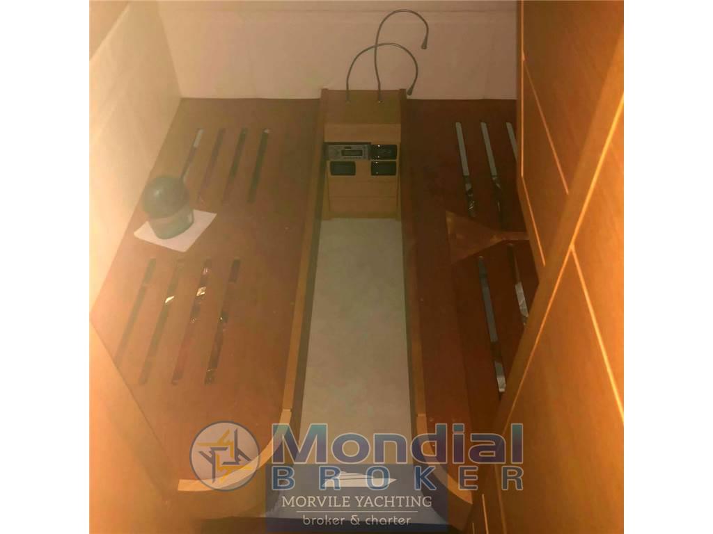 Notas internasCabine: 3 Toilette: 3 Lavasciuga Lavastoviglie Antenna TV satellitare Lettore DVD Impianto stereo Impianto TV Tv Bagni: 3 Cabine: 3 Cucina Forno Congelatore Notas de la instrumentaciónImpianto elettronico- Ecoscandaglio: TRIDATA RAYMARINE - Radar - Log-contamiglia - Stazione vento - Impianto TV: ANTENNA TV SAT - Centrale di navigazione - Plotter - Lettore DVD - Pilota automatico - Radio - Bussola - Lettore CD - GPS - Altoparlanti di pozzetto - VHF Pilota automatico Baromentro Bussola Comandi flaps Contamiglia Ecoscandaglio GPS GPS-Plotter Log Vhf Notas de armamentoCoperture/Tendalini- Tendalino pozzetto Equipaggiamenti Elettrici - Presa corrente a terra - Generatore: KOHLER 20 KW - Inverter Equipaggiamenti interni - Elica di poppa - Lavastoviglie - Elica di prua - Lavatrice: LAVASCIUGA - Pompa di sentina elettrica - Forno - Pompa di sentina manuale - Microonde - WC marino - Aria condizionata - WC elettrico - Riscaldamento - Acqua calda - Frigorifero - Congelatore - Pompa per acqua di mare - Caricabatterie Dotazioni Esterne - Pozzetto in teak Serbatoio acque nere: 1 - Doccia pozzetto - Passavanti in teak - Passerella idraulica - Cuscineria pozzetto - Tavolo pozzetto - Scaletta bagno |