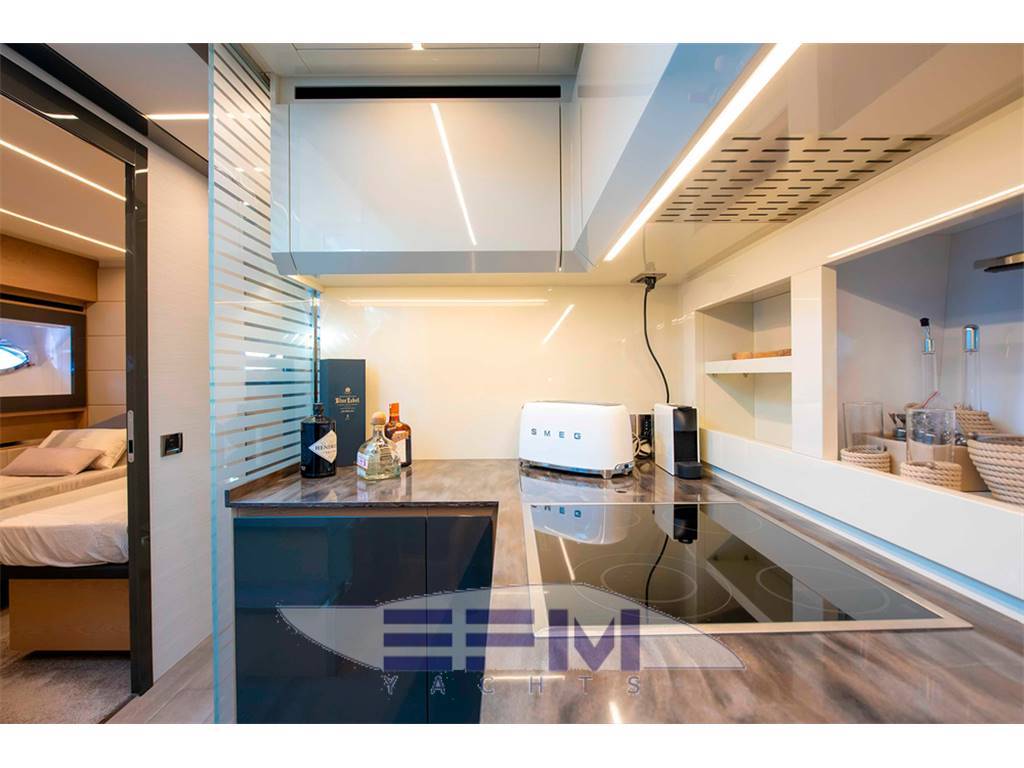 Notas internasCABINS 3 BATHROOMS 3 CABIN CONFIGURATION 1 MASTER ENSUITE , 1 VIP ENSUITE , 1 DOUBLE BEDS ENSUITE CREW MEMBER 1 CREW CABINS 1 CREW HEAD 1 Notas de la instrumentaciónFULL ELECTRONIC INSTRUMENTS SIMRADGPS PLOTTER RADAR AUTOPILOT MULTIFUNCTION VHF BOW THRUSTER STERN THRUSTER INVERTER SAT ANTENNA Notas de armamento• Painted hull• Seakeeper Stabilizers • Air conditioning system • Underwater lights on the swimming platform • Additional underwater lights on both sides of the hull • Cockpit camera • Antifouling • Window covers • Blackout curtains with electric control in all cabins • Onan Generator 19 Kw • Grill on the cockpit • Ice maker with separate tank • 2500 Watt/220V/24V Inverter • Fridge in the master cabin • Cleats for mooring on a swimming platform • Separate name switch on garage door • Simrad Radar • Stern thruster • Dishwasher with dryer • Water maker / 130 liters • Waterproof covers for outdoor cushions • Additional speakers on the cockpit • Optional carpet in the salon • Optional exterior furniture paneling • Mosaic in the master bathroom and VIP cabins • Safety equipment • TV in the salon and in all cabins • Audio system • Optional work surface in the galley • Williams 325 Turbojet Tender |