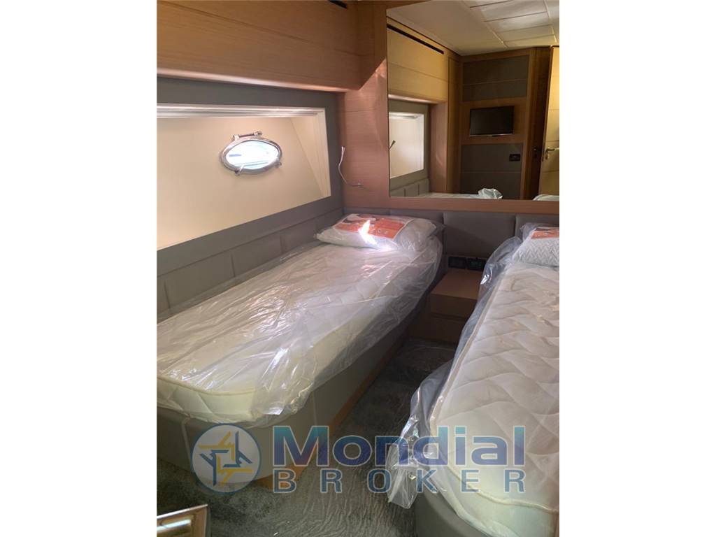 Notas internasNotas de la instrumentaciónDVD player, Autopilot , VHF, Compass, Radio, CD player, Log, speedometer, Radar , TV set , Depthsounder, Cockpit speakers, Plotter , Inverter , Generator , Shore power inletNotas de armamentoDeck:Aft Sundeck backrest electrical lifting Aft camera Boat name in stainless steel letters (backlighted letters) Chain galvanized diameter 12, 100 m Cover for windshield Cushion 50×50 (12 in total) Enlightened pulpit Interphone equipment for bow and helm Mooring cleats, side, retractable (couple) on the bathing platform Second helm station + furniture/seat on the Sun Deck Sponge cloth covers for outside cushions Waterproof coverings for driving station on sundeck Waterproof coverings for external cushions and tables Additional 1200W tonnage Deck s/s protection on VTR |