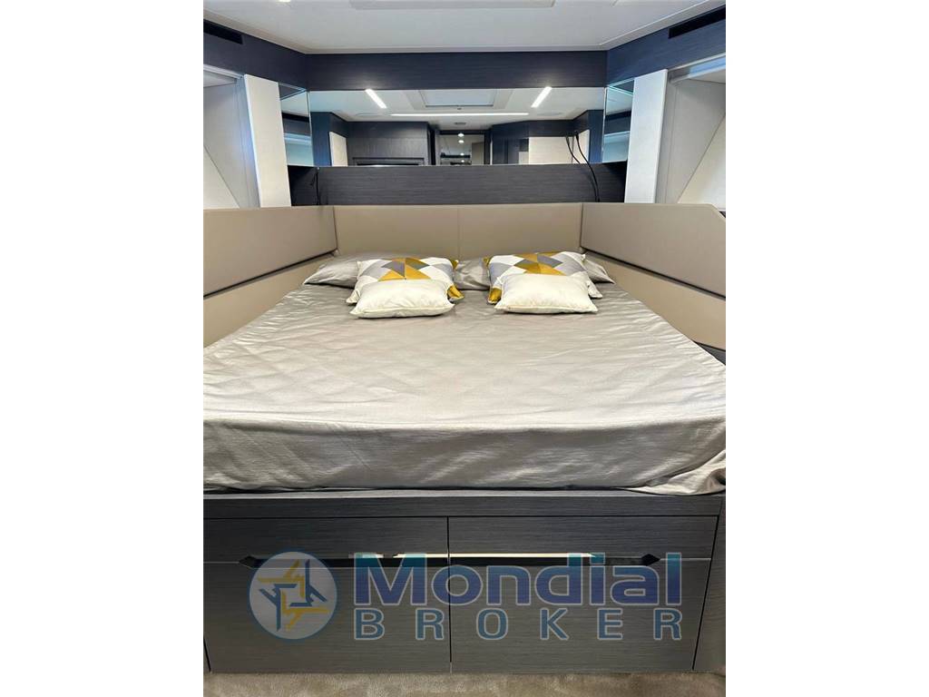 Notas internasLe 4 cabine doppie per un massimo di 9 ospiti: la suite armatoriale a tutto baglio al centro, la VIP a prua e la due camere per gli ospiti lungo il corridoio. Una delle cabine doppie dispone di due letti più un terzo letto a castello Notas de la instrumentaciónMonitor completo del sistema di navigazione Simrad 24" (diff. da std)Naviop - Doppio controllo del pacchetto Naviop - Pacchetto Ambiente Naviop - Pacchetto Mobile Naviop - Pacchetto Efficienza Energetica Naxtex Notas de armamentoPostazione di comando sul flybridgePotenziamento dissalatore Idromar 180l/h (diff) Elica di poppa idraulica 31HP Stabilizzatore giroscopico Seakeeper Easy Dock per unità Surface Sistema di posizionamento dinamico Generatore Mase IS 22kW (diff) Caricabatteria automatico per generatore Inverter 24V / 5000W 50Hz Navigazione Simrad completa (monitor da 24") Sistema di autoidentificazione Ricevitore AIS Simrad NAIS Antenna TV SAT KVH TV6 con decoder standard in dinette Decoder SAT HD Telecamera di poppa Efficienza Energetica Pacchetto doppio assegno VSAT per Internet Tunnel di comando a leva con movimento elettrico Telecamera di poppa Visione termica notturna, termocamera girostabilizzata FLIR Luci sotto la piattaforma da bagno Luci subacquee Xenon aggiuntive (due lati dello scafo) Coperture impermeabili per prendisole, divani e tavoli da esterno Tendalino parasole con pali per prendisole superiore Bimini a poppa Divano pozzetto aggiuntivo amovibile posteriore Candelieri manuali aggiuntivi per passerella Tavolo in vetroresina verniciato in dinette a prua Aggiornamento TV 49" in Salon (diff) TV 65" in cabina armatoriale Televisore aggiuntivo da 55". in dinette Audio premium in tutte le aree esterne (sistema JL) Audio premium nella cabina armatoriale Pacchetto Ambiente Pacchetto cellulare Pacchetto domotico dinette inferiore su iPad Cantina Letto Pullman nella cabina ospiti a dritta Imbottitura Cuscino tra i letti delle cabine ospiti Modifica del divano del salone Piani diversi da std Diff. piano cucina dalla norma Tende elettriche nelle cabine VIP e ospiti Tende oscuranti elettriche nelle cabine VIP e ospiti Lampada da salone (diff) Lampade della cabina armatoriale Sedia aggiuntiva in Salon Telaio per mobili diverso da std Piani mobili in salone diff da std Tavolo da salotto con piano in vetro (diff) Mosaico nella testata della cabina armatoriale - diff da std- Vetro nel bagno padronale (diff) Soffitti perimetrali salone diff da std Tavolo pozzetto – diff.std Ante mobili in cucina diff Tappezzeria esterna - diff. dallo standard Differenziale superiore della cambusa. dallo standard Top arredo bagno diff Chaise longue da tavolo superiore (diff) Pouf in dinette inferiore (diff) Dinette inferiore separata + LED (diff) Tappeto del salone del ponte principale (diff) Tappeto in dinette inferiore Copriletti diversi da std La pelle in tutte le cabine differisce dallo standard Tavolino aggiornato Ante per mobili diverse da std Soffitto in salone diff da std Doccia nel bagno VIP in mosaico Doccia nel bagno ospiti in mosaico Elettrodomestici Miele nella zona equipaggio (diff) Lavatrice e asciugatrice Miele (diff) Kit di Ricambi per motori e generatori Predisposizione per alloggiamento moto d'acqua/tender in garage Documenti di esportazione extra CEE |