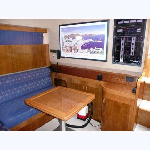 Notas internas1 arreglo de doble cabina de popa con camas de cabina 1 invitado armarios y cajones en maestro de plan 1 invitado cabina literas popa cabina 1 baño con ducha (inodoro eléctrico revisada) 1 baño con ducha (inodoro eléctrico revisada) 1 baño con mesa de comedor de popa y espaciosa ducha con sofás y cocina equipada con cocina cerámica plegablesm/ondas, horno, fregadero con mezclador, refrigerador gabinetes y armarios para la estiba galera y ebanisterÃa de calidad de muebles de cocina, suelos y alfombrado de madera