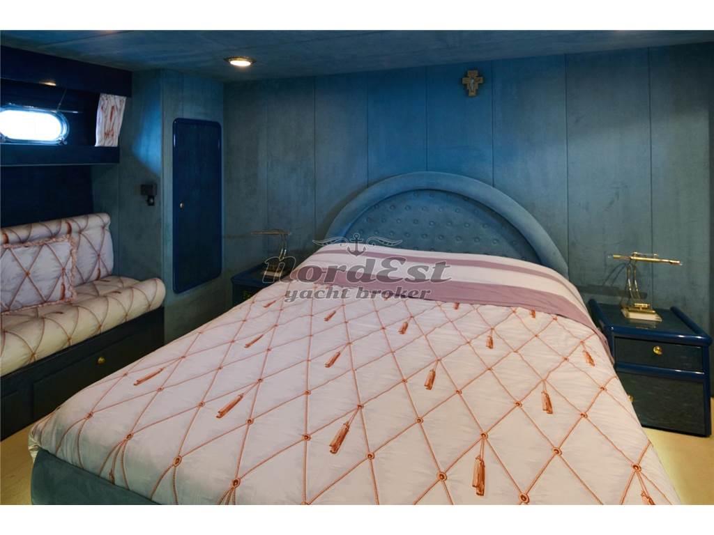 Notas internasAria condizionata: Presente Interni: DESCRIZIONE INTERNI Calpestio dinette in teak, Interni chiari colore miele, Finitura legno in ciliegio ----- Mobile bar Lavastoviglie Lavatrice Antenna TV satellitare Impianto stereo Impianto TV Tv Bagno equipaggio Bagni: 5 Cabina equipaggio Cabine: 5 Posti letto: 9 Cucina Forno: Presente Congelatore Frigorifero Notas de la instrumentaciónPilota automatico: Presente Ecoscandaglio: Presente GPS: Presente Plancetta: Presente Radar: Presente Strumenti meteo Telecamere Vhf: Presente Notas de armamentoImpianto antincendio Asse di rispetto Bimini top: in acciaio Contacatena Copertura pozzetto Cuscineria prendisole Doccia esterna Elica di manovra a poppa: Presente Elica di manovra a prua: Presente Elica di rispetto Faro orientabile Flaps Frigorifero esterno Frigorifero sul flybridge Luci di cortesia Luci subacquee Zattera di salvatagio |