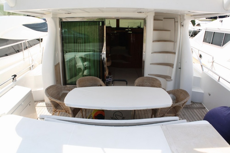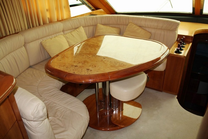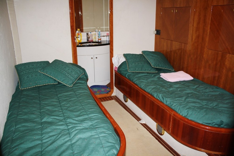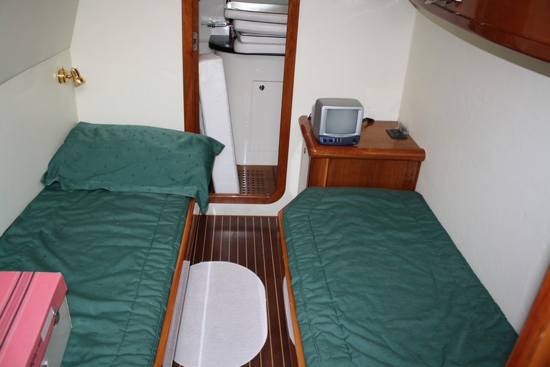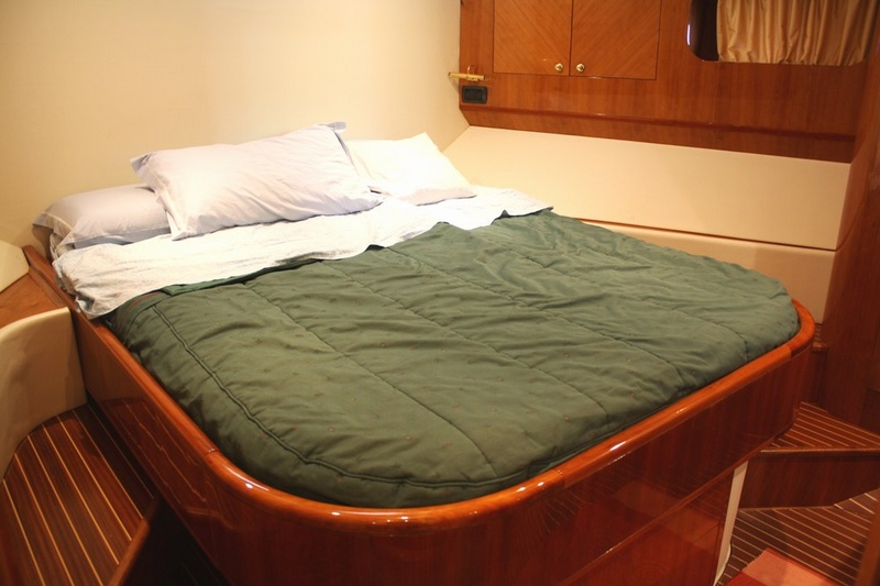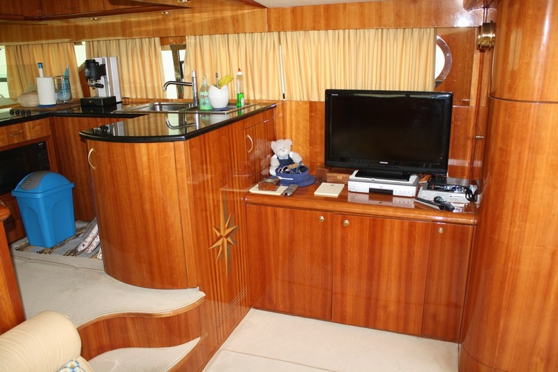 Notas internas- Cabina con cama matrimonial - tres camarotes con dos camas individuales (una en popa) - cuatro baños (cada cabaña tiene baño privado) - sala de estar con sofá, "c" y los cuadros, por el contrario, el entresuelo cocina con cocina eléctrica, nevera, congelador, combinación bosch horno y fregadero doble, salón comedor con sofá, "c", mesa y otomana, como puente de gobierno se opuso. - Interior en madera de cerezo, sofás de cuero.