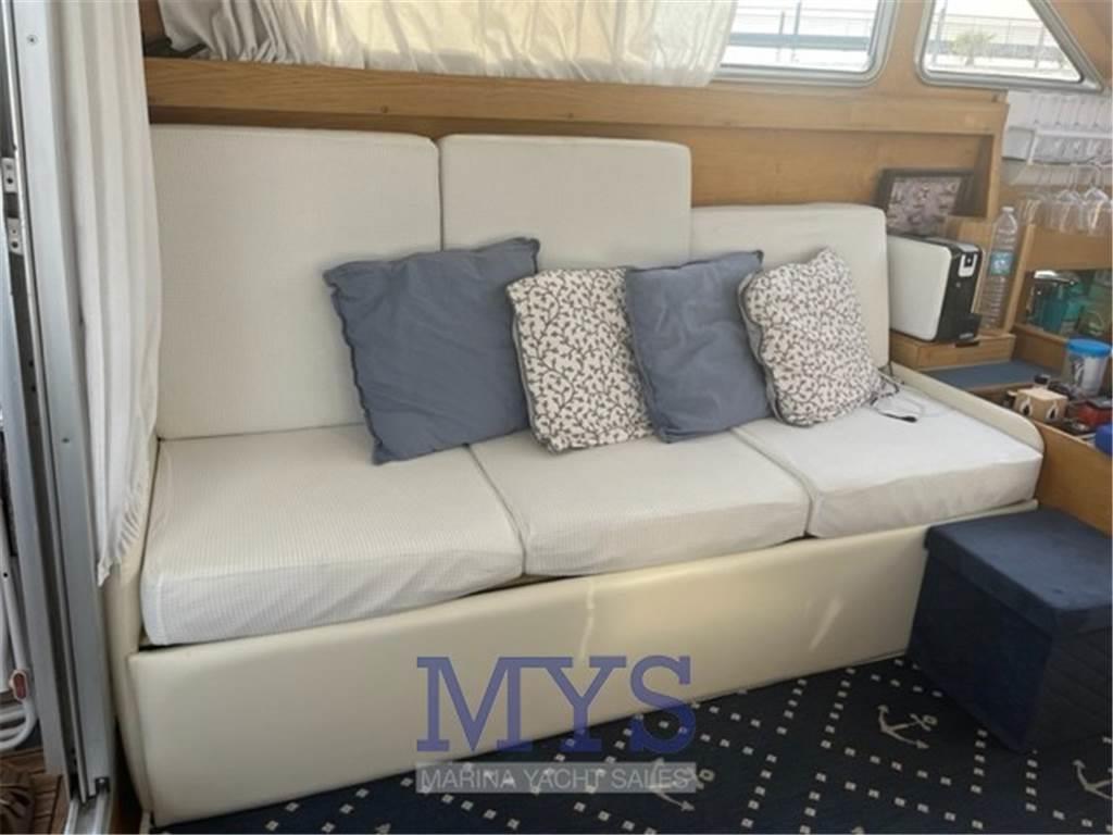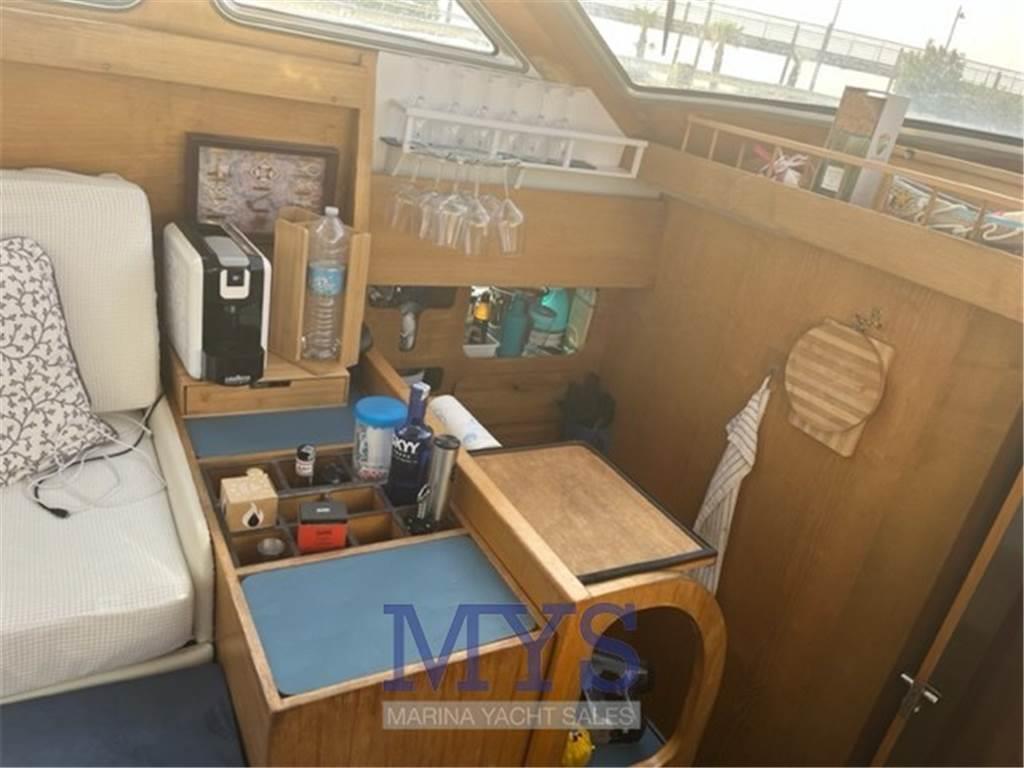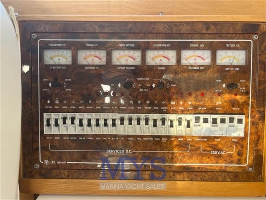 Notas internasCabina armatoriale con letto matrimonaile alla francese e bagno privato con doccia Cabina ospiti con letti singoli a castello e bagno privato con doccia Dinette interna con divano a L e tavolo da pranzo Cucina al piano infriore dotata di lavello, frigo, forno e fuochi Fly Bridge con postazione di comando e prendisole Notas de la instrumentaciónStrumentazione motori (n.2)Plotter gps (n.2) Eco Log VHF (n.2) Generatole Vericello elettrico Flaps idraulici Batterie Caricabatteria Boiler acqua calda 1 frigo Radio e stereo Autoclave pompa di sentina elettrica pompa di sentina manuale salpancira elettrico Notas de armamentoPozzetto in teakCuscineria di prua Cuscineria Fly Cuscineria pozzetto Tavolo esterno Negli ultimi anni sono stati eseguiti numerosi lavori di manutenzione: 2024) montate nuove turbine 2023) montato riscaldamento webasto - montato nuovo aspiratore fumi nel vano motore - rifatto totalmente l'impianto elettrico (solenoide, fusibili, portafusibili, relè, cavi) 2022) rifatta cuscineria di prua, del fly e del pozzetto - montati nuovi amplificatori e stereo - pulizia scambiatori 2021) montato nuovo caricabatterie 2020) sostituiti iniettori - sostituite pompe gasolio |