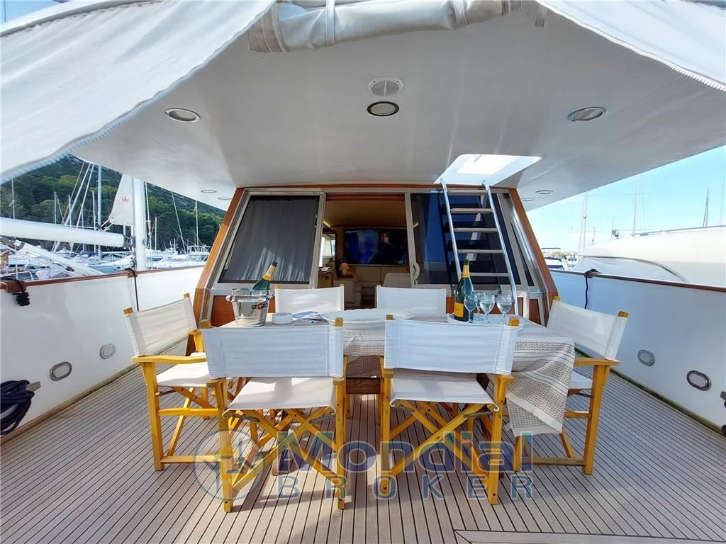 Notas de la instrumentación2 Allarme gas, 2 Allarme motore, 2 Allarme sentina, Ancora, Angolo barra, Antenna radar, Autoclave, Batterie, 2 Bussola (Caim Genova), 2 Camminamenti laterali in teak, Caricabatterie, 2 Comando motori elettronico, Doccia esterna, Doppia timoneria, Ecoscandaglio (Furuno FE 4200), Fari fissi a poppa, GPS (Techmarine), Impianto antincendio, Lavaggio catena, Luci di cortesia, Passerella (Opac Mare), Piattaforma, Pilota automatico (Sperry - 8T), Plotter, Pompa di sentina automatica, Porta ingresso, 2 Porta laterale, Pozzetto Teak, Presa 220V banchina, Presa acqua banchina, Radar (Furuno), Radio VHF (Furuno), Salpa Ancore Elettrico, Scaletta da bagno, Tavolo pozzetto, Tromba, Winch tonneggio di poppa, Winch tonneggio di prua