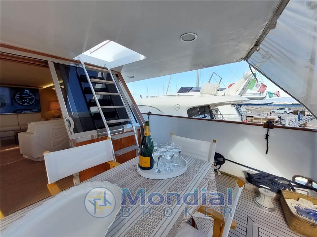 Notas de armamentoAltoparlanti, Antenna Satellitare TV, Aria condizionata (Salone e cabina armatoriale), Bimini, Boiler (bivalente), Congelatore, Cucina, Cuscineria di prua, Cuscineria fly, Decoder satellite, Digitale Terrestre, Forno (Ignis 2020), Frigorifero esterno, Frigorifero interno (N°3), Home Theater, ICE Maker, Impianto TV, Inverter, Lavastoviglie (Bosh), Macchina caffè, Piastra in vetroceramica (Ignis 4 fuochi), Prese interne 12v, Prese interne 220v, Radio AM/FM, Stereo, Teli copri finestra, Tendalino, 2 TV (Samsung 2021), 4 WC marino elettrico