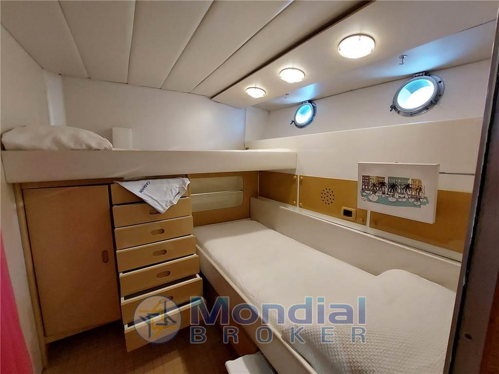 Notas internas1 Matrimoniale italiana, 4 Doppia in piano, 1 Cabina equipaggio, 4 Toilette, 1 Toilette Equipaggio Gli interni del Picchiotti 68 offrono ampi spazi progettati per garantire comfort e funzionalità durante la navigazione. La zona notte è composta da una spaziosa cabina matrimoniale e quattro cabine doppie con letti in piano, ideali per ospitare comodamente più persone a bordo. Completano la disposizione interna quattro bagni dedicati agli ospiti e una cabina equipaggio separata con toilette propria. Gli ambienti sono rifiniti con materiali solidi e di qualità, in linea con lo stile classico ed elegante di questa imbarcazione storica.