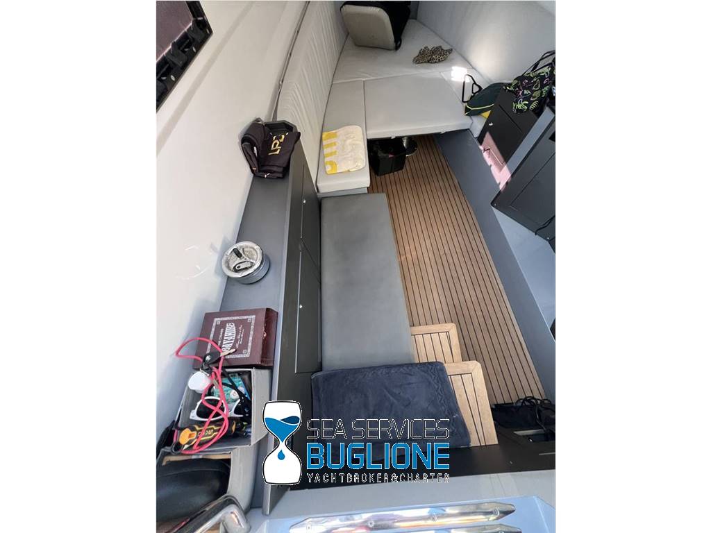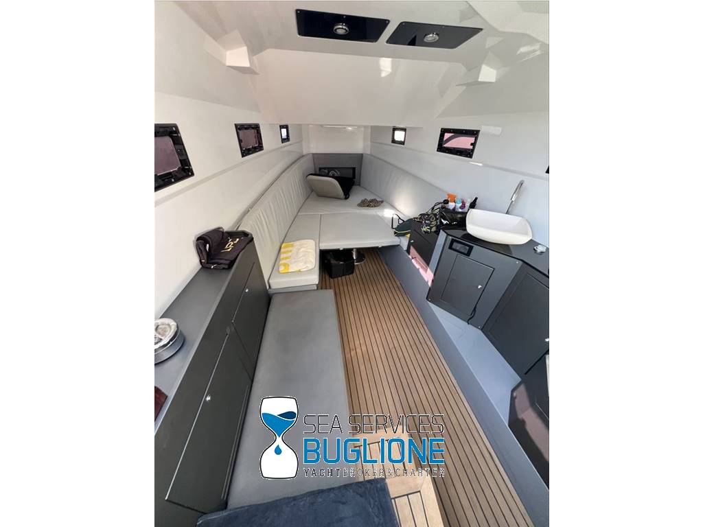 Notas internasAmbiente arioso ed alto, all'estrema prua trovano alloggio i divani che grazie al tavolo si trasformano in letto. Bagno a dritta nave in unico ambiente. Notas de la instrumentaciónGps RaymarineMonitor Mercury Vhf Raymarine Concatena Quick Notas de armamentoJoystick di manovraVerricello elettrico Doppio frigo esterno Tavolo pozzetto Hard top |