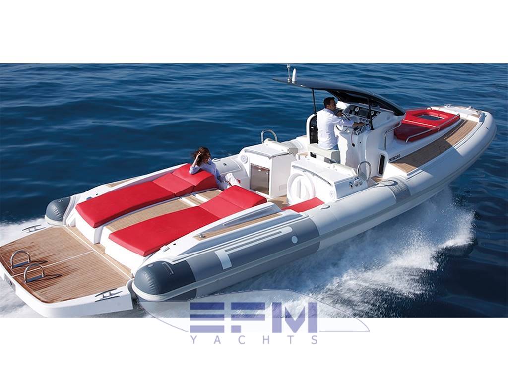 Amazing sporty & comfortly 10 mt. Pzero Rib. Twin Mercruiser 2x6.2L DTS 350hp Bravo1 for over 45kn max. speed. One cabin with separate head layout. |