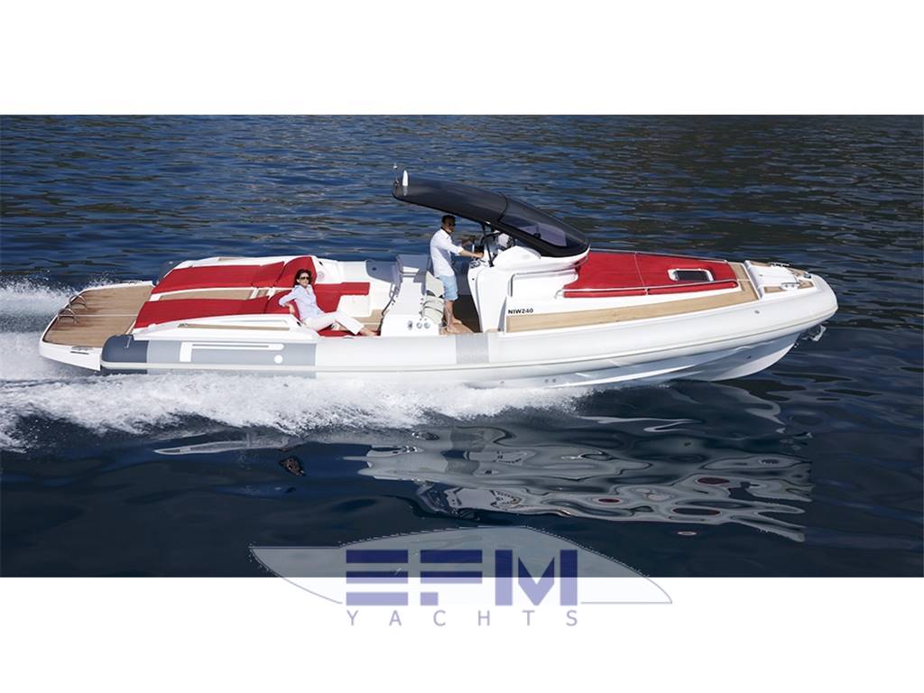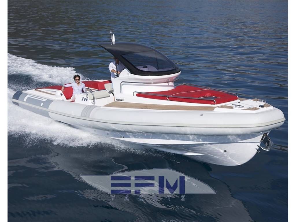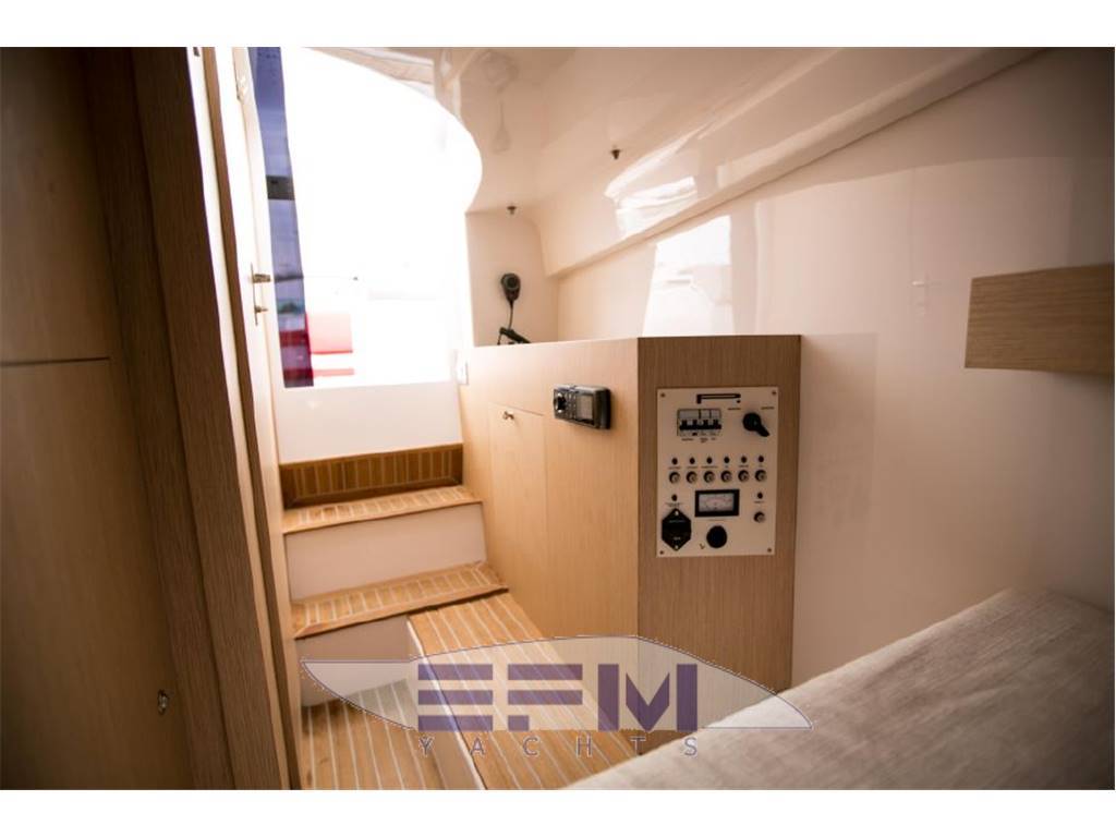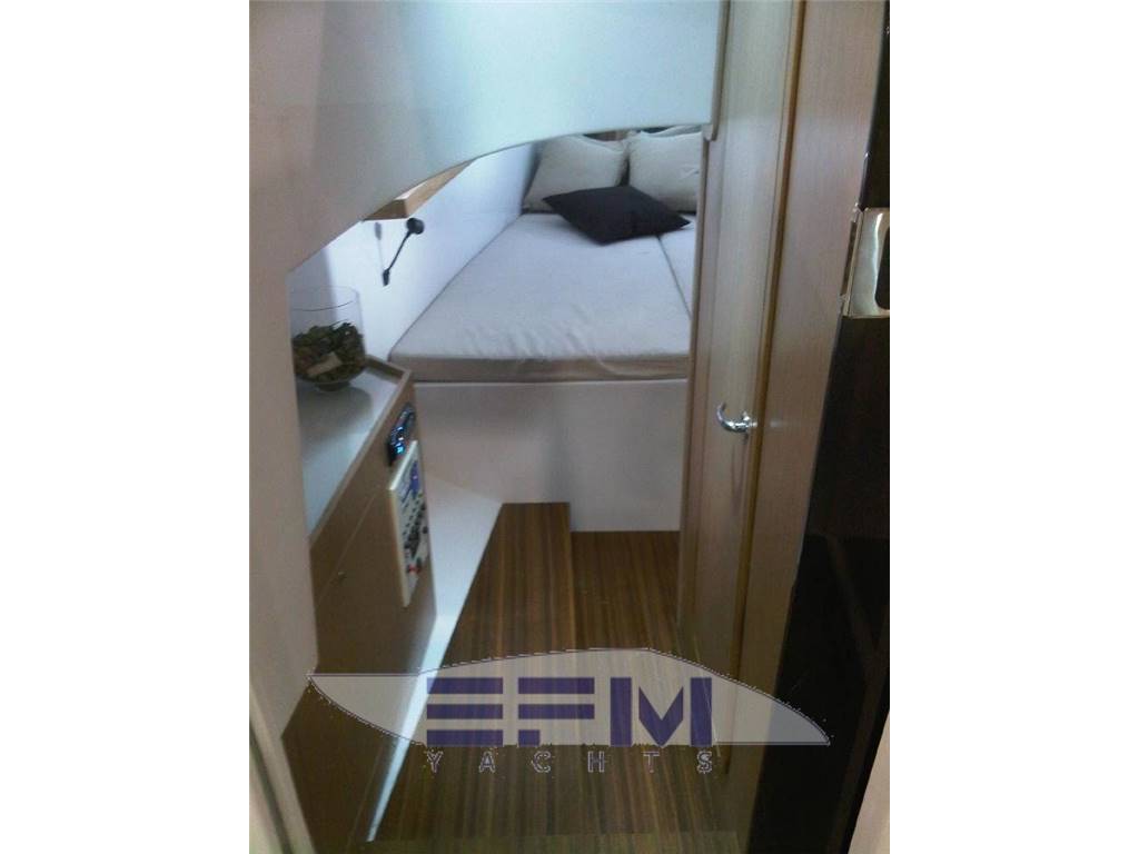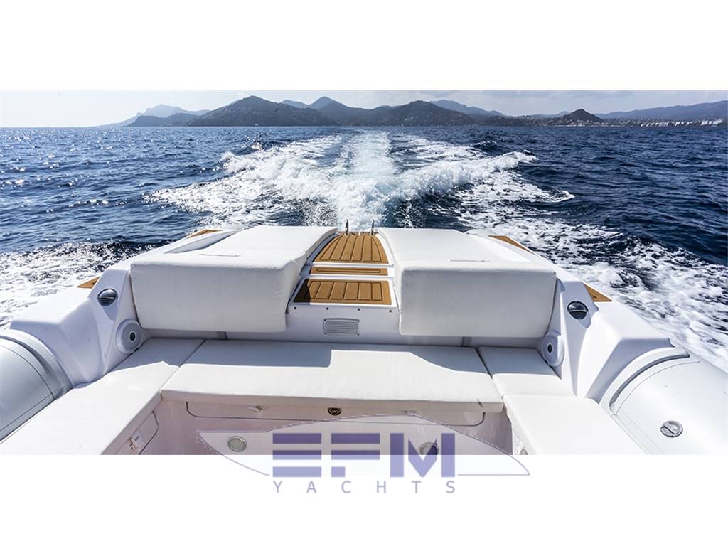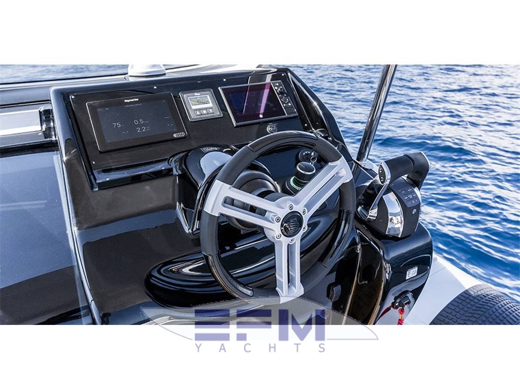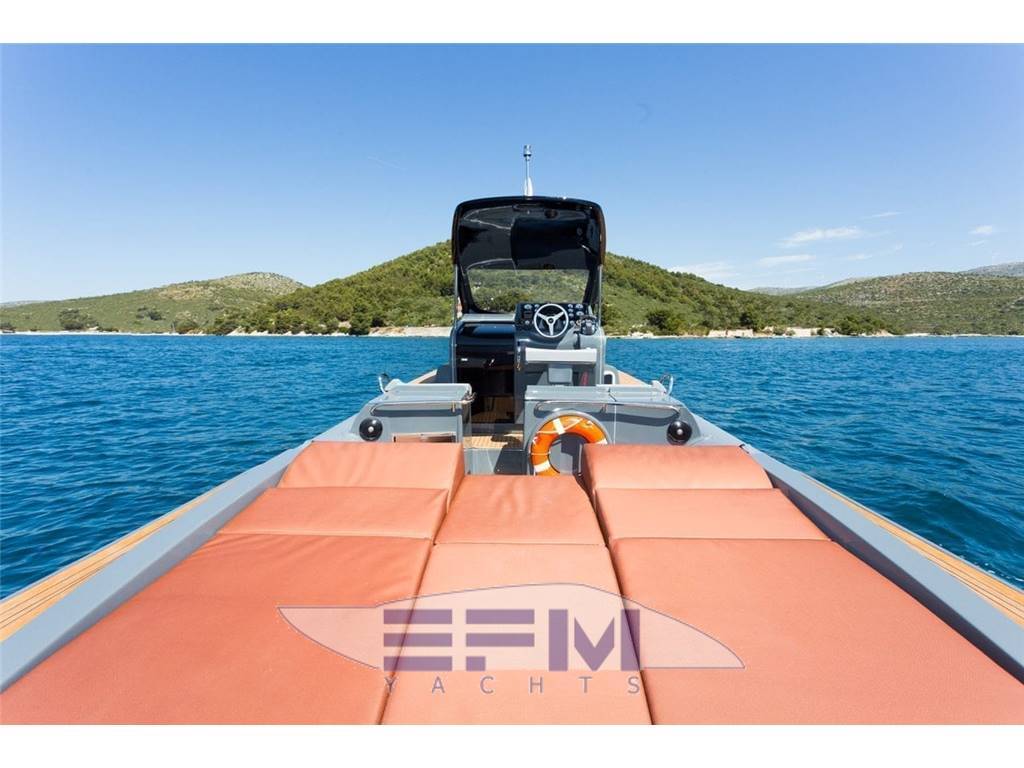 Notas internas• Cabin with double bed • Bathroom with washbasin, shower, toilet and black water tank Notas de la instrumentación• Compass• 12V socket • Dock socket, battery charger, power cord • Horn • Electric windlass with anchor and chain • Inverter • Hydraulic steering gear (efb version) • Raymarine Plotter Hibrid-touch Notas de armamento• Cushions• Central cushion on aft sundeck • Non-motorised ice chest • Electric inflator • White hard top • Shower with fresh water system • Cockpit lights and navigation lights • Cocktail cabinet with fridge and sink • Bilge pumps • Life buoy holder • Teak finish • Digital switching • Battery breaker • Tables complete with feet and stands • Detachable awning • Bracket with retractable boarding ladder (fb version) • Bridge with retractable boarding ladder (efb version) • Automated driver’s seat adjustment |