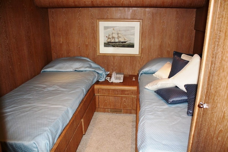 Notas de armamento2 x 16 kw generadores Onan. - Aire acondicionado - fabricante del agua - un circuito cerrado cabina cámaras y sala de máquinas - Pasarela - cubierta de popa - grúa de licitación en el momento - bote con 30 CV del motor Honda - asÃ, por el lado y volar en teca - minibar en la habitación y sobre la marcha - reflector sanshin - Televisor LCD y DVD en salón y camarote principal.