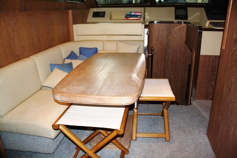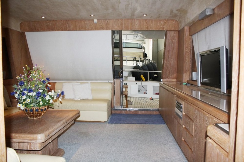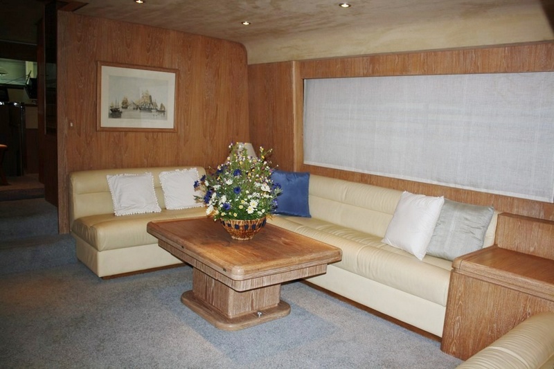 Notas internascubierta: sala de estar con tres sofás y mesa de comedor, el gabinete de frente, cocina con cocina eléctrica, nevera / columna congelador, horno, microondas, fregadero doble y puerta lateral, pasillo con puerta lateral y la escalera para volar, Divali cerveza con mesa de comedor, timón. piso inferior: la cabina principal con cama doble, cuarto de baño con ducha separada y dos cabinas con camas dobles, cada una con baño privado y ducha independiente. la tripulación de cabina doble con cuarto de baño (acceso a la proa) - teca arena Interior, sofás de cuero.