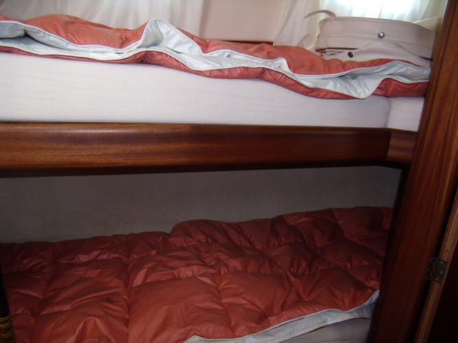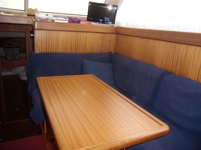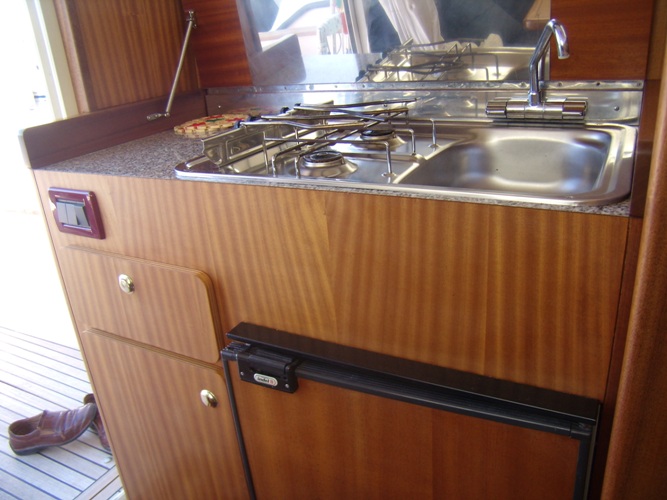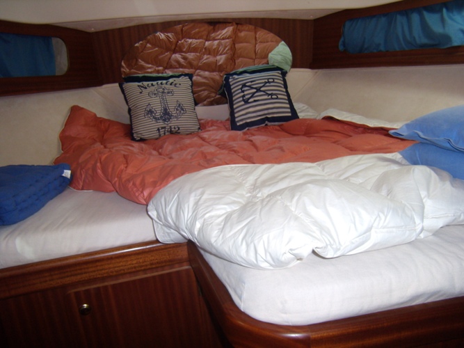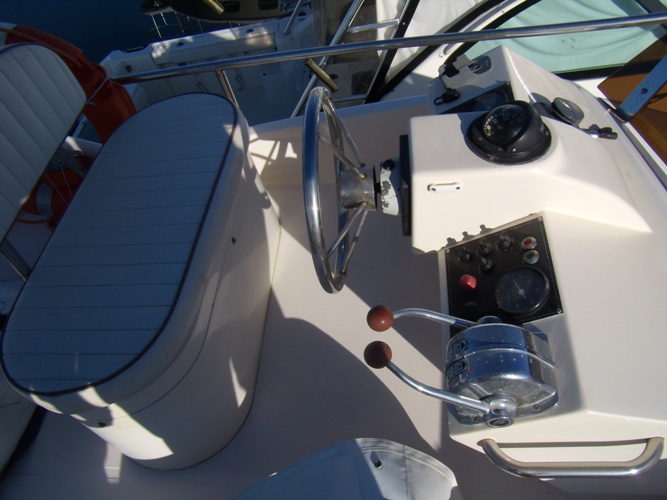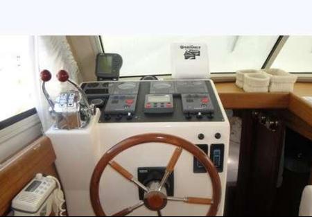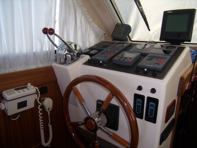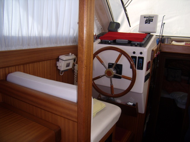 Notas internasNotas de la instrumentación2 baterÃas, 12-220 voltaje, cargador de pilas, cocina, horno, nevera, calentador de agua, Autoclave, VHF, GPS, registro, ECHO, aut, piloto, gráfico trazador, Molinete anchor winch controles repetidos en mosca, passerella idraulicaNotas de armamentoCabina de teca y madera de teca, teca barganello, casco color Borgoña cojines, mosca de toldo exterior cubierta y cubierta de asiento |