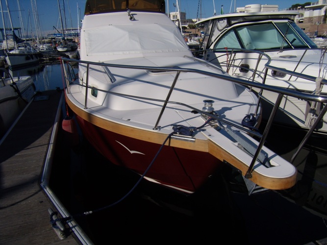 La mosca 10 es una nave versátil que resume las caracterÃsticas de Portofino Marine: lÃneas precisas, dinamismo y mucho amor por el mar y sus tradiciones. Espacios de grandes caracterÃsticas caracterizan el exterior bien habitable. Proporciones correctas dan una lÃnea armoniosa y dinámica que asegura la actitud correcta en el mar de garantizar la máxima agilidad en la conducción y maniobrar la placa de forro de roces y pontatura en madera de teca maciza de alta calidad a embellecer el perfil y la cabina. Los interiores de confort ofrecen letto dos: la primera a proa a estribor con una cama doble, la segunda a la izquierda donde están alojados dos camas superpuestas. El inodoro está separado entre las dos partes. Barco en buenas condiciones, muy precisa y atento propietario. Casco color bordeau excelentes condiciones, la posibilidad de COMMUTING, comisiones de Agencia + |