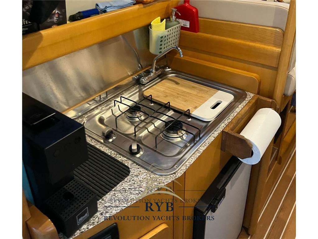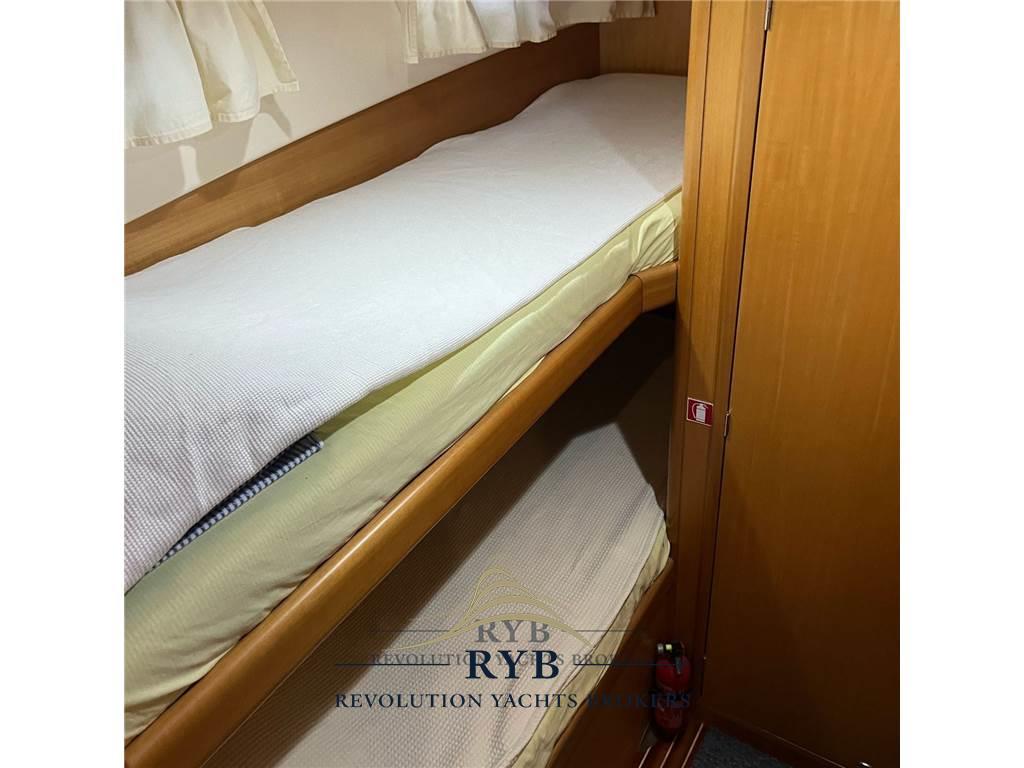 Notas internasNotas de la instrumentaciónBussola, Contamiglia, Ecoscandaglio (SONDA AIRMAR 1KW), GPS, Joystick, Pilota automatico (RAYMARINE S6002), 2 Plotter (RAYMARINE ES. 127 PLOTTER HYBRIDTOUCH DA 12 POLLICI), Radar (RAYMARINE 4 KW), Radio VHF (RAY 49), Sonar (CP 370), Yacht controller.Notas de armamentoAllestimento tecnico e di coperta:Allarme motore, Ancora (ACCIAIO INOX BRUCE + CATENA 60m), Doccia esterna (ACQUA CALDA/FREDDA), Elica di prua - bow thruster, Flap idraulici, Luci di cortesia, Luci subacquee, Piattaforma (TEAK), Pompa di sentina elettrica, Pompa di sentina manuale, Porta ingresso, Pozzetto Teak, Ripetitore strumentazione (FLY), Salpa Ancore Elettrico, Scaletta da bagno. Dotazioni domestiche di bordo: Pavimento interno in legno, Riscaldamento (WEBASTO 5,5KW), WC marino manuale. Dotazioni di sicurezza: Riflettore Radar. Intrattenimento: DVD, Radio AM/FM, Stereo, TV. Cucina ed elettrodomestici: Cucina, Fornello, Frigorifero interno. Tappezzerie: Oscuranti, Tendalino (FLY). |