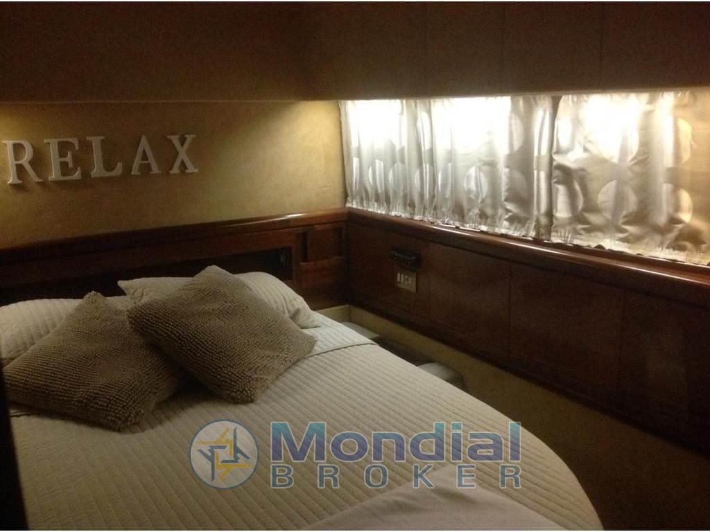 Notas internasNotas de la instrumentaciónAngolo barra, Antenna radar, Bussola, Comando motori elettronico, Computer di bordo, Contamiglia, Ecoscandaglio, GPS, Pilota automatico, Plotter, Radar, Radio VHF, SSB, Stazione vento.Notas de armamentoAllestimento tecnico e di coperta:Allarme motore, Allarme sentina, Asse di rispetto, Autogonfiabile, Camminamenti laterali in teak, Doccia esterna, Elica di prua - bow thruster, Faro orientabile, Flap idraulici (N°2), Gruette per tender su fly, Impianto antincendio, Indicatori Flaps, Lavaggio catena, Luci di cortesia, Luci subacquee, Passerella (iDRAULICA), Piattaforma, Pompa di sentina automatica, Pompa di sentina manuale, Porta laterale, Pozzetto Teak, Presa 220V banchina, Presa acqua banchina, Rollbar, Salpa Ancore Elettrico, Scala reale, Scaletta da bagno, Sistema Depurazione acque nere, Tender, Tromba, Winch, Winch tonneggio di poppa, Winch tonneggio di prua. Dotazioni domestiche di bordo: Aria condizionata, Clima reversibile, Impianto acque nere, Pavimento interno in legno, Prese interne 12v, Prese interne 220v, Serbatoio Acque Nere, Telefono Interno, 4 WC marino elettrico. Dotazioni di sicurezza: Giubbetti di salvataggio. Intrattenimento: Altoparlanti, Digitale Terrestre, Impianto TV, Radio AM/FM, Stereo, TV. Cucina ed elettrodomestici: Congelatore, Cucina, Forno, Frigorifero esterno, Frigorifero interno, Ghiacciaia, ICE Maker, Lavatrice, Piastra in vetroceramica. Tappezzerie: Bimini, Copripozzetto, Cuscineria completa, Cuscineria di poppa, Cuscineria di prua, Cuscineria fly, Cuscineria Pozzetto, Oscuranti, Teli chiusura T-Top, Teli copri finestra, Telo Copertura Fly, Telo copriconsolle, Telo coprisedile, Tendalino. |