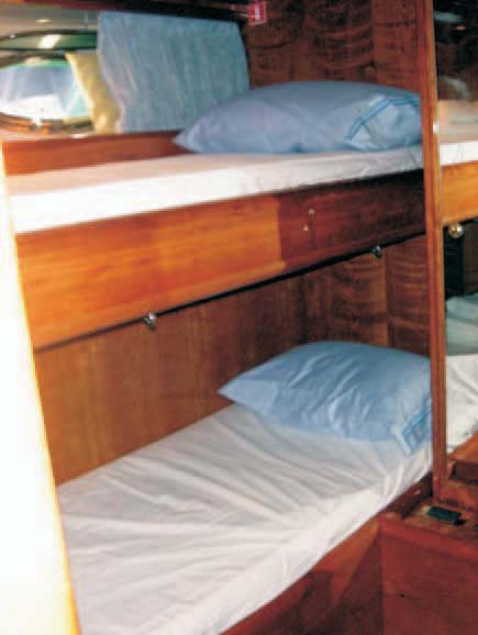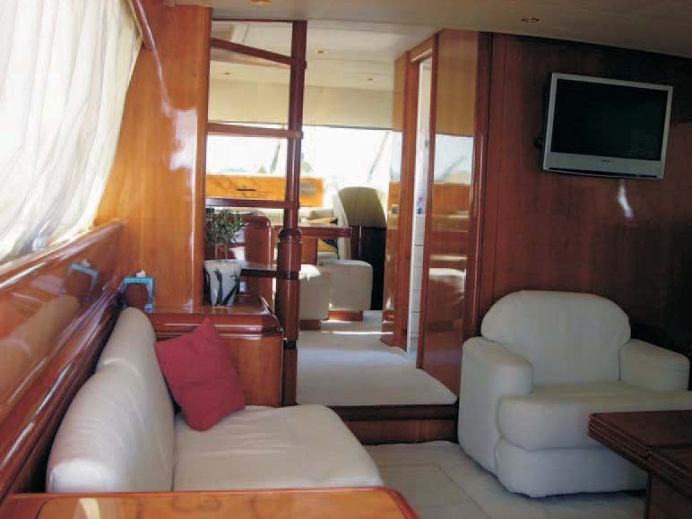 Notas internasNotas de la instrumentaciónpiloto automático - eco - log - GPS - Radar - VHF 2 - TV + DVD + CD - SatéliteNotas de armamentorectificador de dos generadores de 16 kw Kohler - - pasarela hidráulica - aire acondicionado - Caldera - hélices de proa - máquina de café "- encimera de cocina - secadoras - refrigerador - congelador - fábrica de hielo - bote - motor fuera borda |
