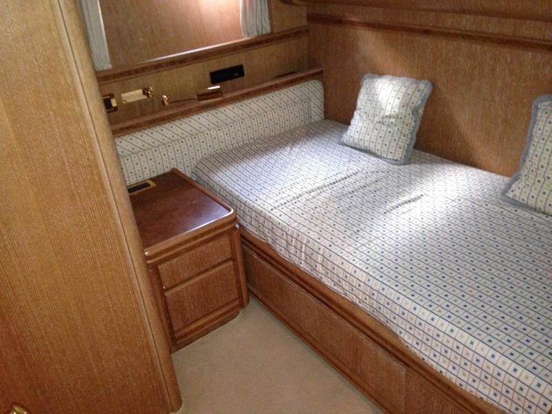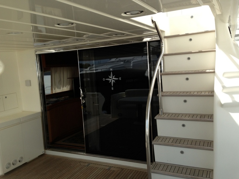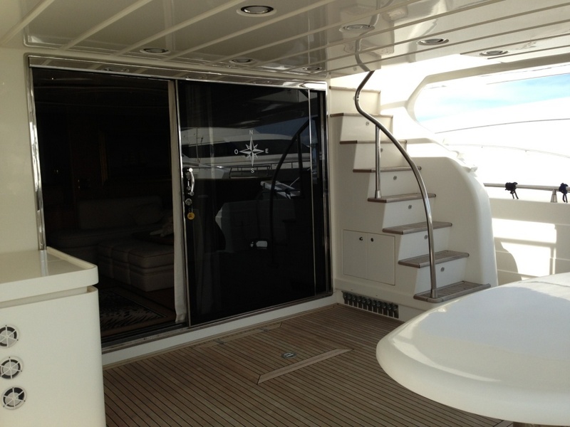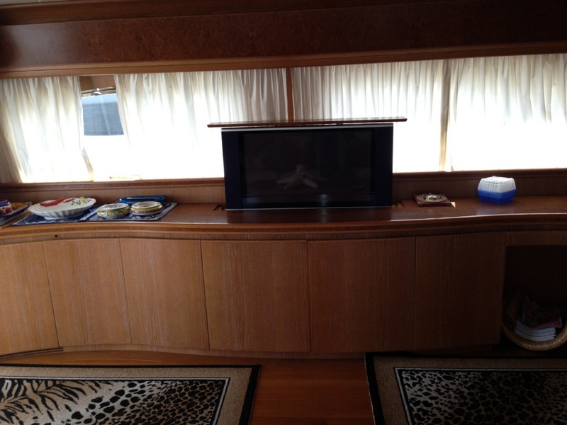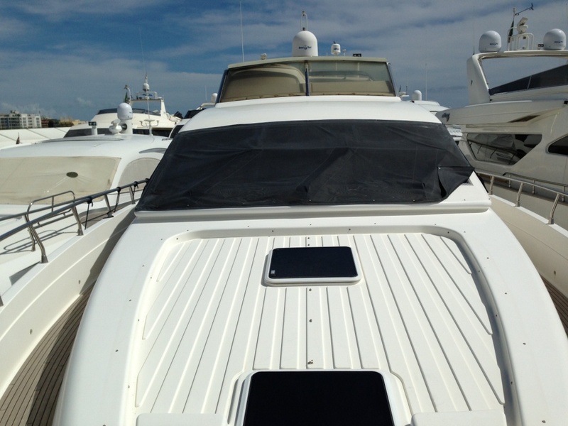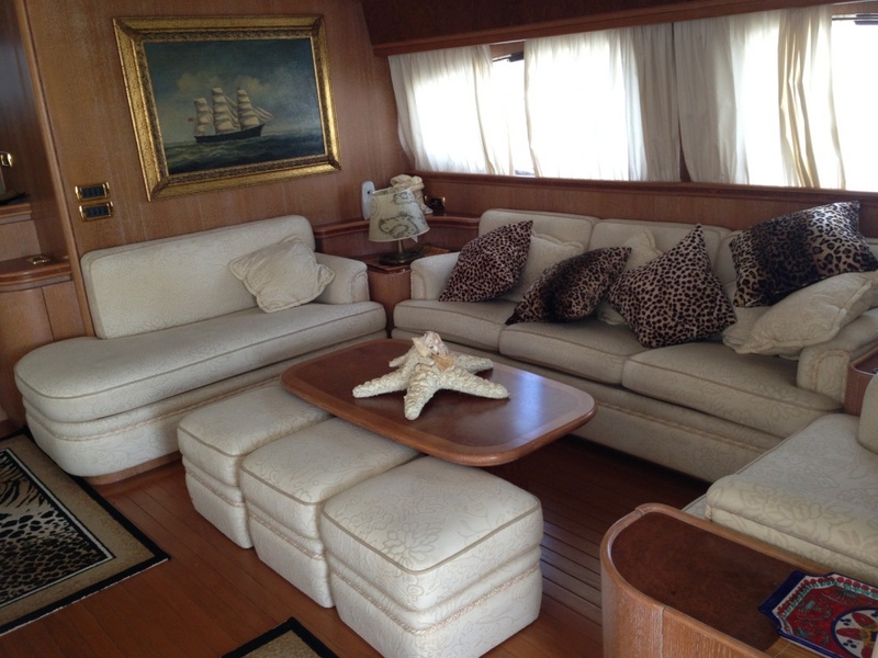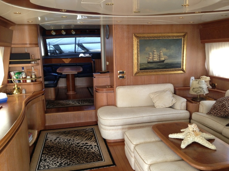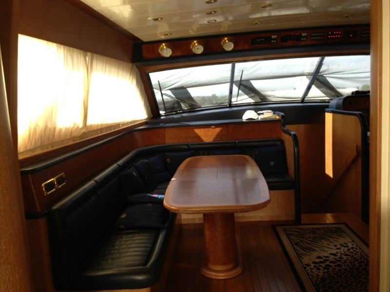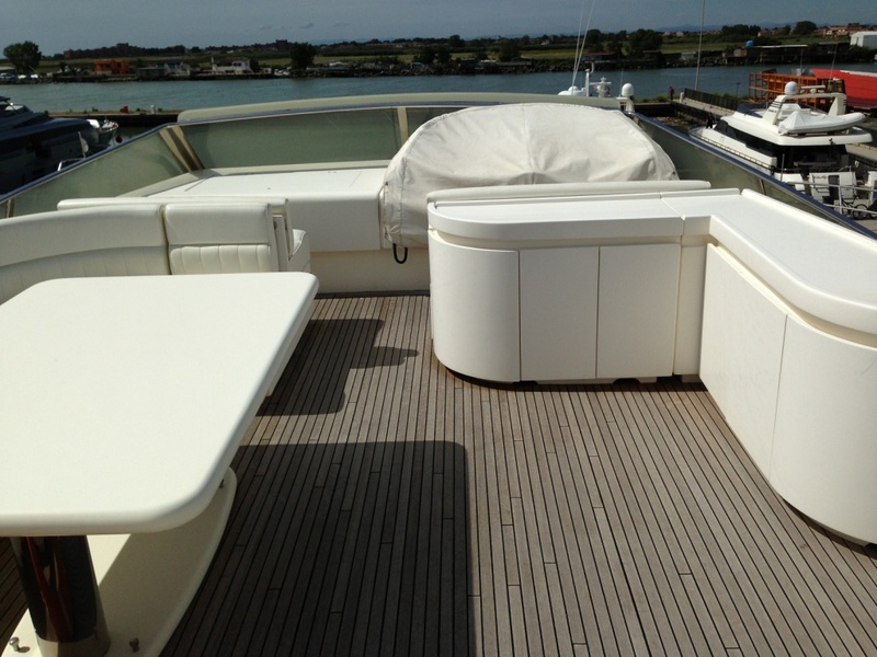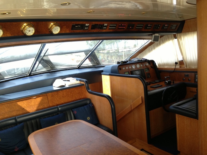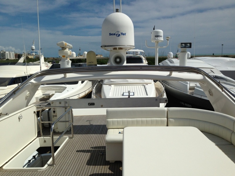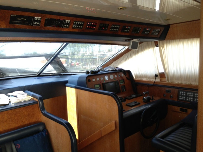 Notas internasNotas de la instrumentaciónPiloto automático, Sonda GPS satelital antena vhf radio dvd grúa de hielo viento estación en flybridge passerella idraulica retráctil cabrestantes, cámara de sala de arco propulsor eléctrico aire acondicionado arco de molinete generador 3° estación de conducción en la cabina eléctricamente reflector motor TV LCD en todas las habitacionesNotas de armamentoBañera de teca, baño plataforma y cuscineri externa completa passavanti, flybridge bimini top, grúa flybridge, cocina sobre la marcha con nevera fregadero y parrilla, casco blanco |