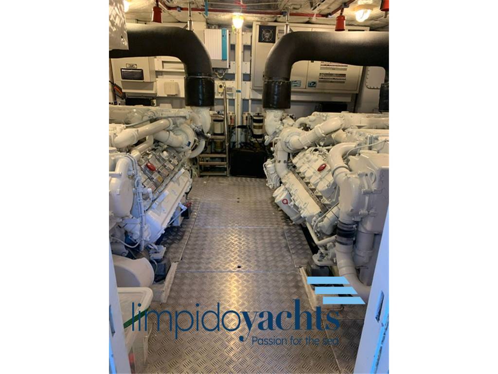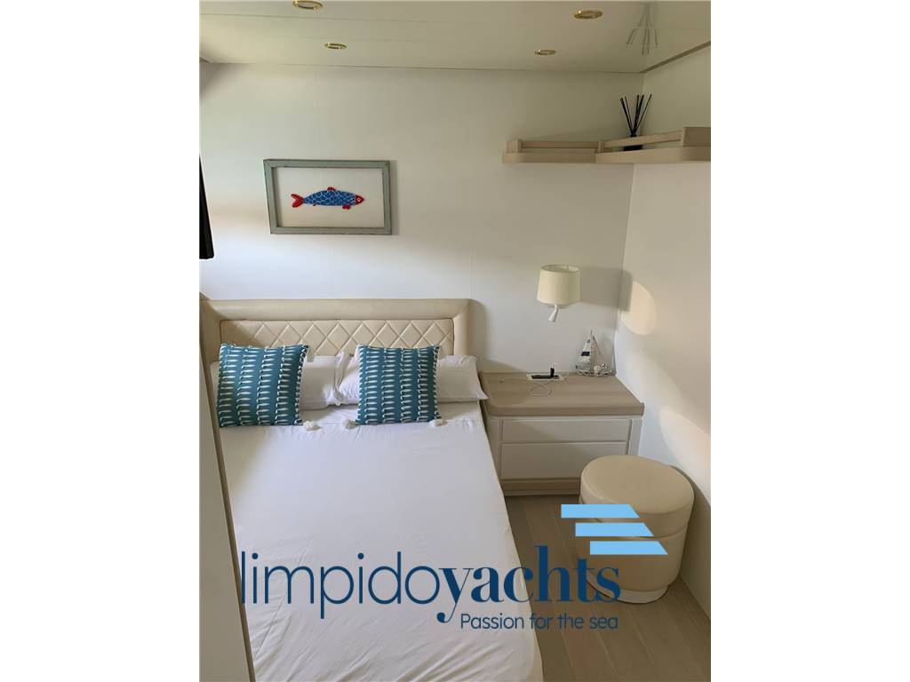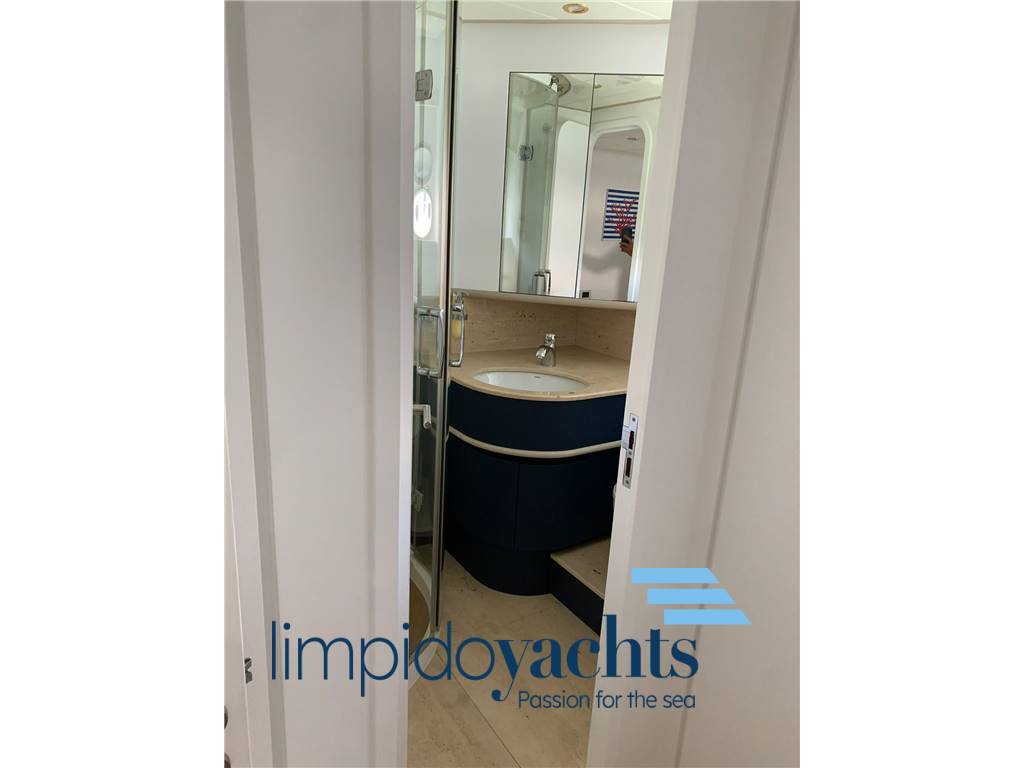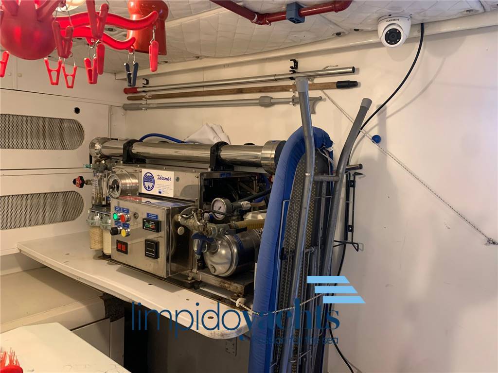 Notas internas4 cabine 1 armatoriale 1 vip 2 cabine ospiti 2 cabine equipaggio 4 wc con cabina doccia aggiunta letto doppio in salone a scomparsa sotto divano Descrizione Armamenti Notas de la instrumentaciónInterfono, Log, Plotter, Plotter con antenna GPS, Radar, Radio VHFAngolo barra, Antenna radar, Bussola, Comando motori elettronico, Computer di bordo, Contametri catena, Contamiglia, DSC vhf, Ecoscandaglio, GPS Notas de armamentotelo coprisedileCopripozzetto, Cuscineria completa, Cuscineria di poppa, Cuscineria di prua, Cuscineria fly, Cuscineria Pozzetto, Teli copri finestra, Telo copriconsolle, Tappezzerie Piastra in vetroceramica Aspirapolvere centralizzato, Congelatore, Cucina, Fornello, Forno, Frigorifero esterno, Frigorifero interno, ICE Maker, Lavastoviglie, Lavatrice, Microonde, Cucina ed elettrodomestici Altoparlanti, Antenna Satellitare TV, Decoder satellite, Digitale Terrestre, DVD, Home Theater, Impianto TV, Radio AM/FM, Stereo (CD), TV (LCD) Intrattenimento interne 220v 2 Telecamera, 5 WC marino elettrico, Aria condizionata, BBQ/ Grill, Boiler, Cassaforte, Clima reversibile, Dissalatore, Impianto acque nere, Inverter, Prese |