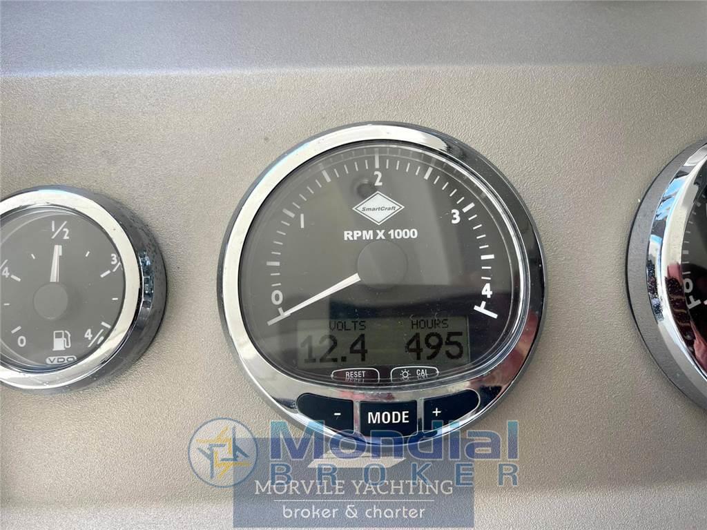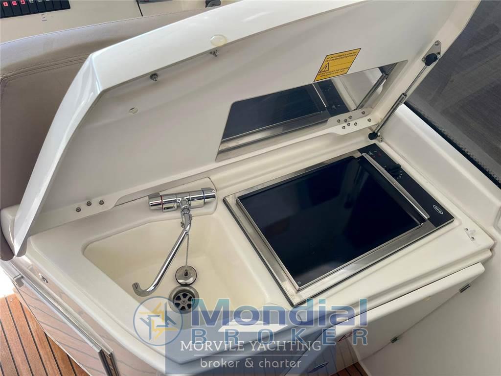 Notas internasCabine: 2 Toilette: 1 Cabine: 2 Notas de la instrumentaciónImpianto elettronico- Ecoscandaglio - Log-contamiglia - Impianto TV - Centrale di navigazione - Plotter - Pilota automatico - Radio - Bussola - Lettore CD - GPS - Altoparlanti di pozzetto - VHF Pilota automatico Baromentro Bussola Comandi flaps Contamiglia Ecoscandaglio GPS GPS-Plotter Joystick di manovra Log Notas de armamentoSerbatoio acquenere: Coperture/Tendalini - Tendalino pozzetto Equipaggiamenti Elettrici - Presa corrente a terra - Generatore: ONAN 5 KW Equipaggiamenti interni - Elica di prua - Pompa di sentina elettrica - Forno - Pompa di sentina manuale - Microonde - WC marino - Aria condizionata - WC elettrico - Riscaldamento - Acqua calda - Frigorifero: 2 FRIGORIFERI + CUCINA ESTERNA - Caricabatterie Dotazioni Esterne - Pozzetto in teak - Doccia pozzetto - Cuscineria pozzetto - Scaletta bagno Dotazioni Addizionali - Controllo tramite joystick Cuscineria Frigorifero esterno Scaletta: 1 Tavolo nel pozzetto |