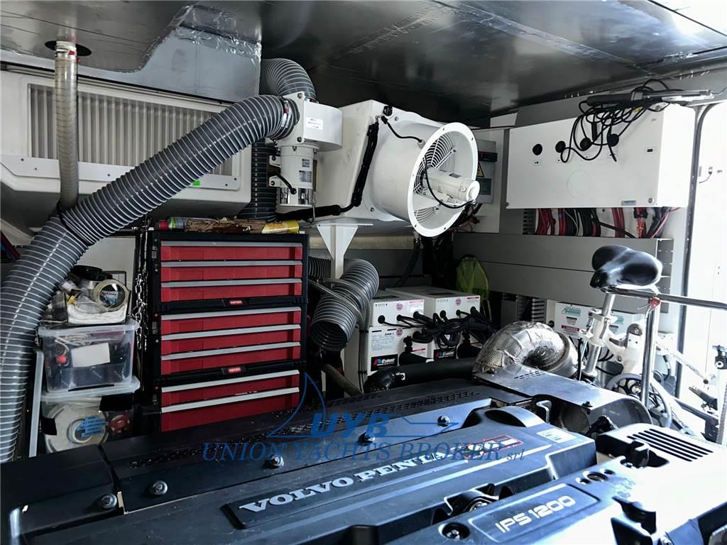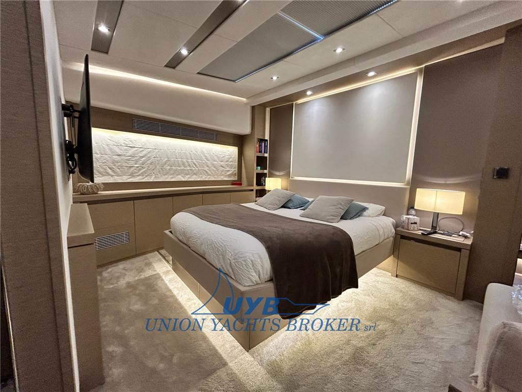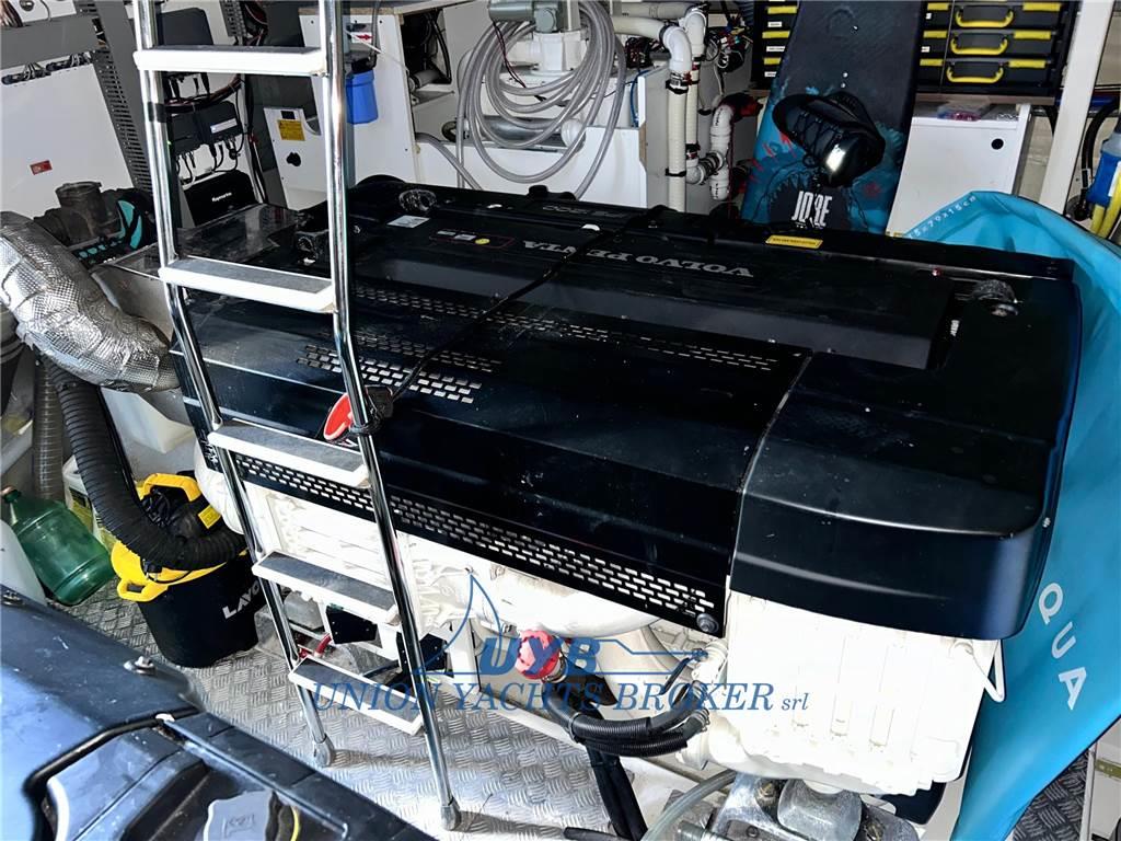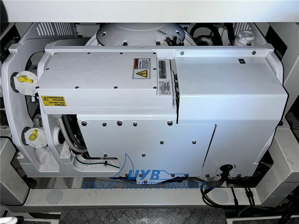 Notas de armamentoAltoparlanti, Aria condizionata (86.000 BTU), BBQ/ Grill (Fly), Bimini (Fly elettrico), Boiler, Clima reversibile, Congelatore, Cucina (interna + flybridge), Cuscineria completa, Cuscineria di poppa, Cuscineria di prua, Cuscineria fly, Cuscineria Pozzetto, Frigorifero esterno (80L), Frigorifero interno, Impianto acque nere, Impianto TV, Inverter, Lavasciuga, Lavastoviglie, Microonde, Piastra in vetroceramica, Prese interne 12v, Prese interne 220v, Radio AM/FM, Serbatoio Acque Nere, Telecamera (Fly + sala macchine), Telo copriconsolle, Telo coprisedile, Tendalino (pozzetto), TV (LED 42"), 4 WC marino elettrico, Winecooler, Parquet wenge per ingresso e salone