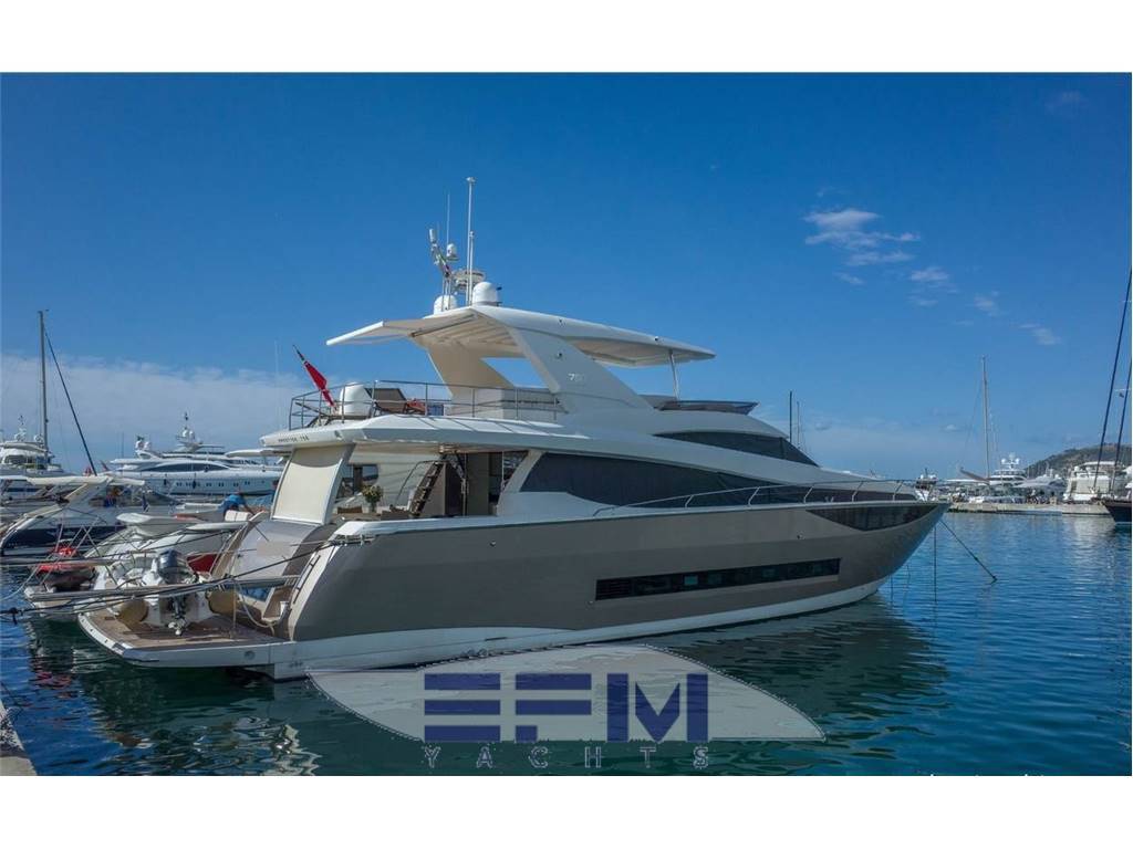 Amazing "as new" Prestige 750 fully equipped. 2 seakeeper, hard top, DPS, Joystick.Twin MAN V8-1200hp (750 h). Full bean Master ensuite on main deck. |