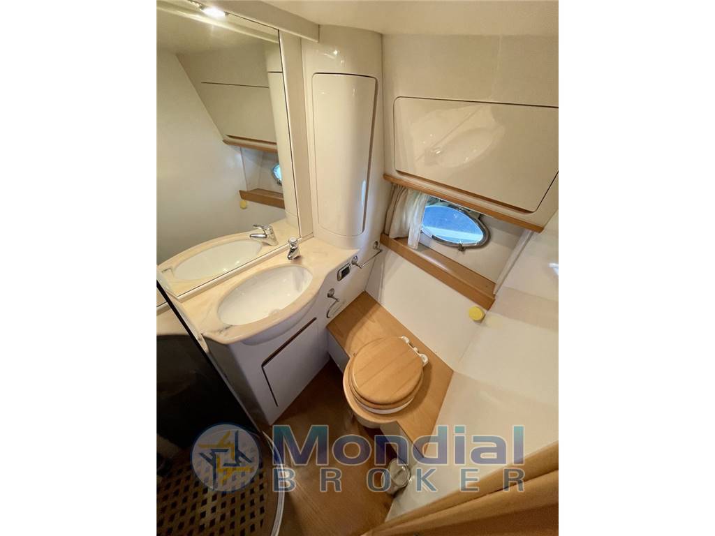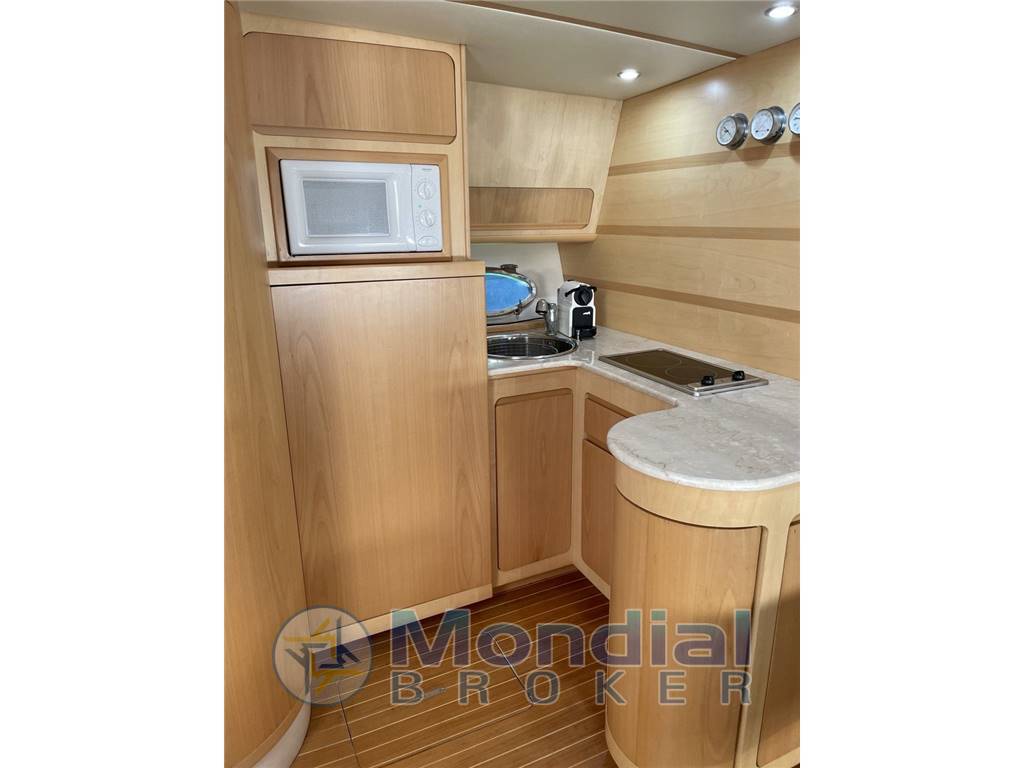 Notas internas- a fianco della cabina di sinistra un comodo bagno con doccia e doppio accesso, dalla cabina e dalla dinette. - a proravia della saletta si trova una zona giorno con dinette e una cucina a C, con penisola bar che la divide simbolicamente dalla dinette e TV Sharp Aquos. La cucina ha un lavandino, un frigo, un freezer, 2 fuochi ad induzione e un forno a microonde Daewoo. - a prua cabina armatoriale con bagno privato. Notas de la instrumentaciónVHF ICOM ICM 401 / Pilota automatico AP 22 Simrad / GPS / Ecoscandaglio.Passerella Bensenzoni idraulica Notas de armamentoEliche diam 800 mm passo 980 / Boiler Indel Marine Basic 50 litri / Impianto aria condizionata 170000 BTU Uflex AcquaAir / Flaps Bennet 24 V / Salpancore Quick Aries 1000W 24 V/ Impianto Hi-Fi Sony / Antenna Tv / Winch per tonneggio / Impianto aspirazione centralizzato. |