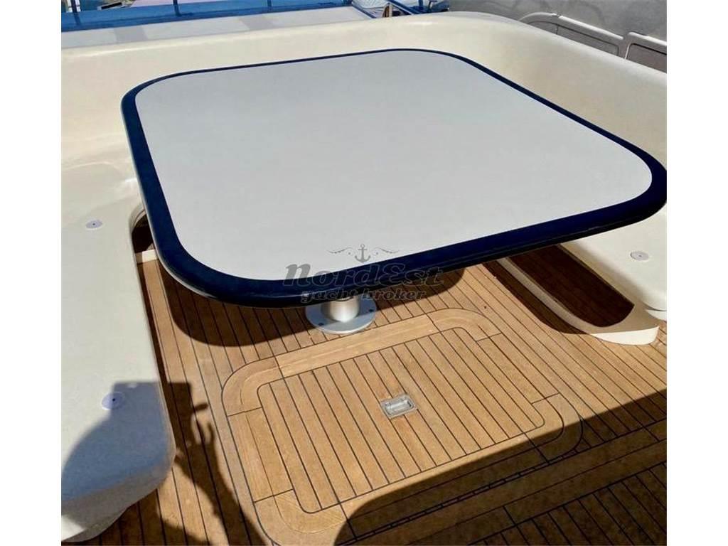 Notas internasAria condizionata: tutti gli ambienti Mobile bar Impianto stereo Impianto TV Tv Bagni: 2 Cabine: 3 Posti letto: 6 Cucina Forno: Presente Frigorifero Piano Cottura: 1 Notas de la instrumentaciónPilota automatico: Presente Ecoscandaglio: Presente GPS: Presente Vhf: Presente Notas de armamentoImpianto antincendio Bimini top: si in acciao Cuscineria prendisole Doccia esterna Elica di manovra a poppa: Presente Elica di manovra a prua: Presente Flaps Frigorifero esterno |