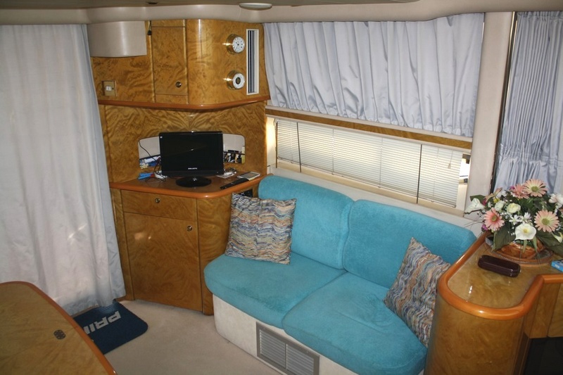 Notas internas-Interiores Nogales. Notas de la instrumentación-Piloto automático Autohelm-GPS/plotter VHF Seiwa-Navico-depth sounder Autohelm.Notas de armamentoEMI - generador-aire acondicionado-maniobras hélice en proa-Passerella idraulica ligera Lomac 6 HP motor Yamaha cuatro tiempos de Bimini top-Tomar el sol cojines-nevera-bar en el salón. |