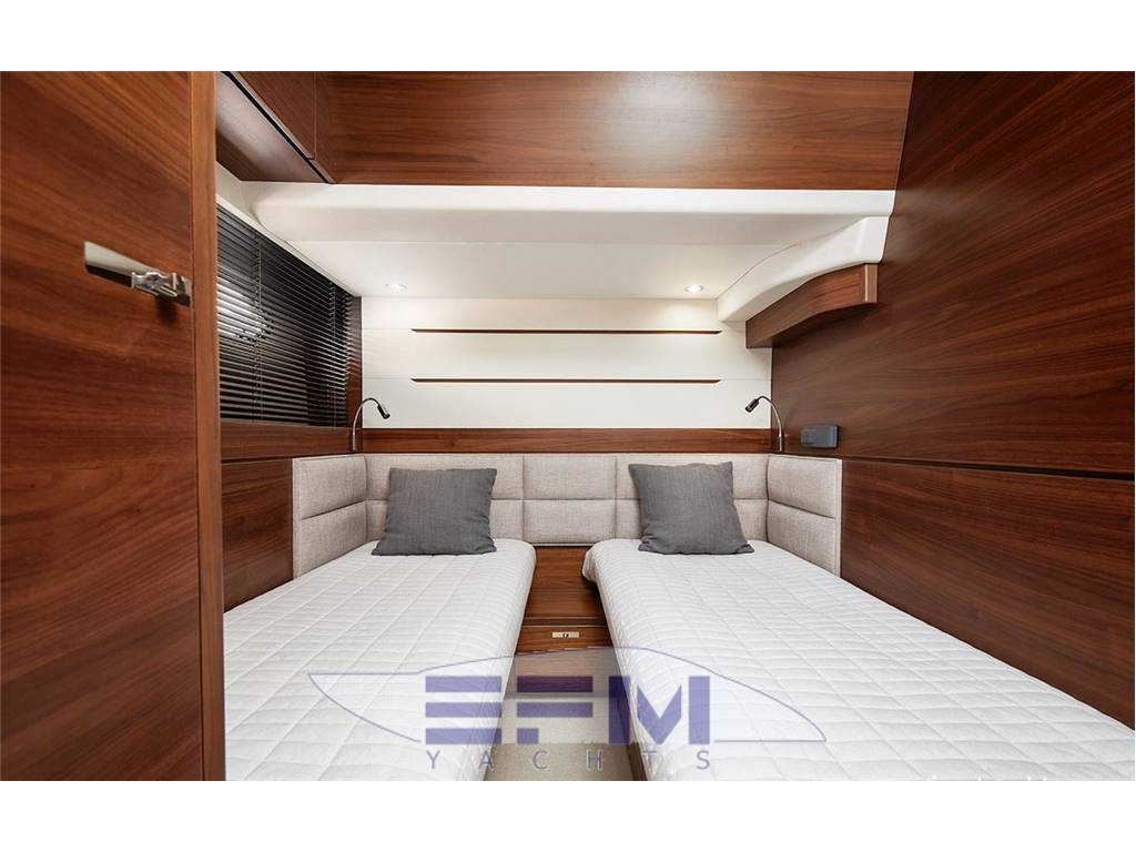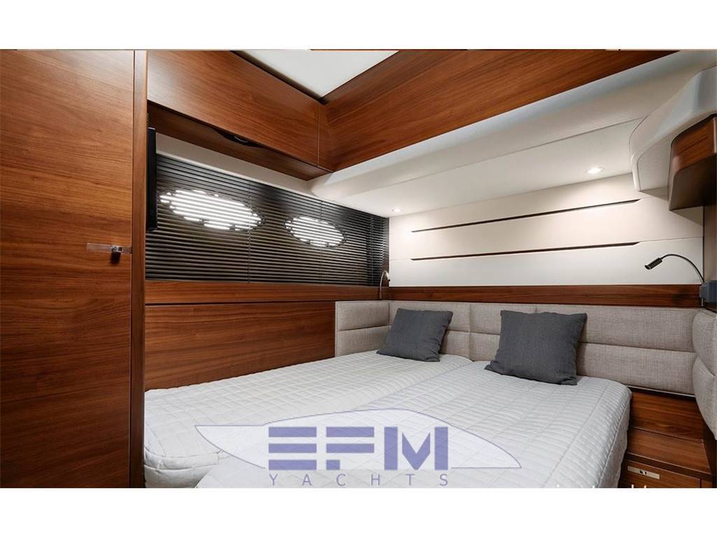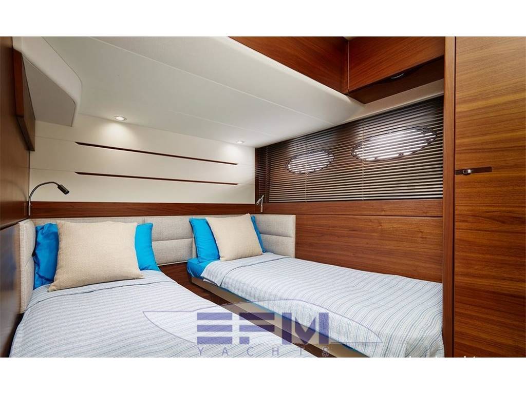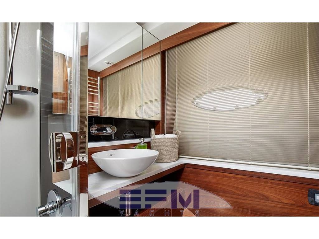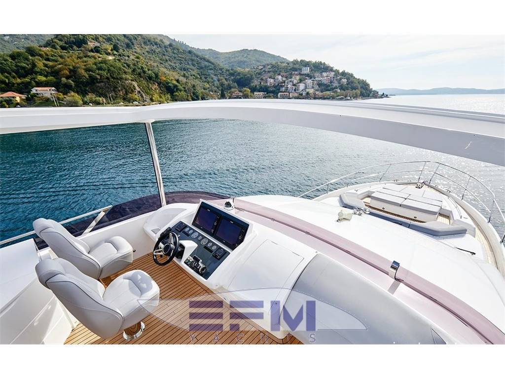 Notas internasBerths 8 + 2 Crew Head compartments 3 + 1 Crew Notas de la instrumentaciónNavigation system:• AIS Raymarine • VHF • 2 x Raymarine GS 165 at lower helm • 2 x Raymarine GS 165 at upper helm • Radar • SAT TV system and empty domm Notas de armamentoAdditional options• Fin stabilization system • Watermaker • Full air conditioning • Two generators ONAN • Electrohydraulic telescopic gangway • Hydraulic swimming platform • Teak on side decks, cockpit, swimming platform and flybridge • Teak table in cockpit • Hydraulic bow and stern thrusters • Guest cabin with sliding two beds • GRP flybridge hardtop with electric opening section • Lighting on flybridge • AUDIO/VIDEO package • External sunbathing cushions • Stainless steel anchor • Stainless steel swimming ladder • Underwater transom lights • Separate washing machine and dryer • Coffee table in salon • Mosquito screens for all opening portlights • Tender Williams 385 turbojet • Separate entrance to the owner cabin from salon • Bow tent with portable poles |