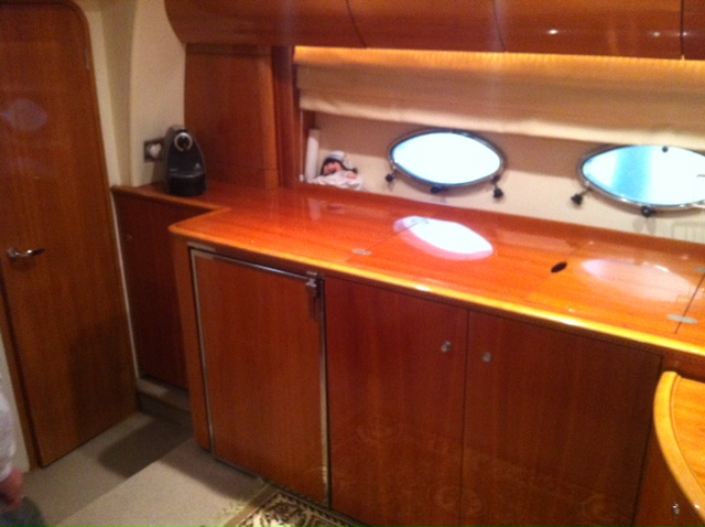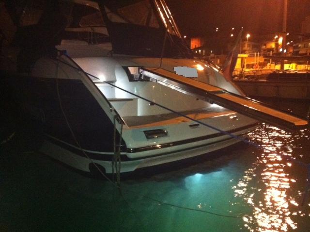 Notas internasNotas de la instrumentaciónBrújula, Gps, piloto automático, vhf, plotter, sonda, fish Finder, velocÃmetro, satélite TV, sistema estéreo, tv lcd.Notas de armamentoMolinete eléctrico, bomba de achique, limpiaparabrisas con depurador, Searchlight Electr., cargadores, generador diesel, completo Bimini top, cierre completo de toldos holandés, amortiguador soláriums, iluminación de piso, iluminación y garaje bajo el casco llevado a popa (2011), Pasarela hidráulica, molinete eléctrico, flpas, báscula de baño, ducha exterior y plataforma de baño. |