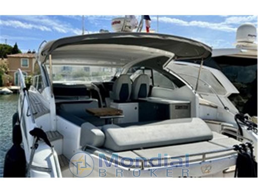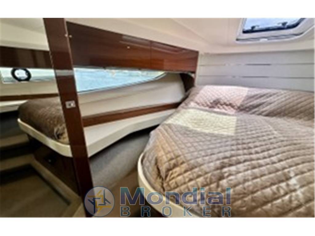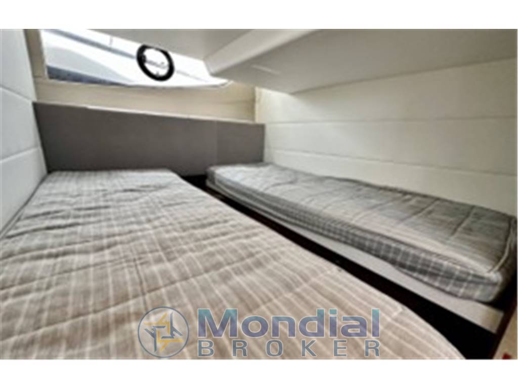 Notas internasForno combinato /grill/microonde Frigorifero in cucina Salone realizzato in pelle Cabina con grande letto matrimoniale Cabina con due letti singoli Bagni di servizio con doccia Conversione di letti singoli in letto matrimoniale nella camera degli ospiti Notas de la instrumentaciónElica di pruaFlap idraulici, con indicatore nel cruscotto Autopilota (RAYMARINE, P70R) Chartplotter/GPS/ Radar (RAYMARINE, ES128) Tachimetro lago (Raymarine) Ecoscandaglio (Raymarine) VHF Joystick di manovra Notas de armamentoSistema di disappannamento del parabrezzaSerbatoio delle acque reflue |