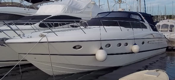 Notas internasNotas de la instrumentaciónCompás con antena externa Vhf Radar Furuno Gps Fishfinder Plotter contamiflia registro tridata Raymarine piloto automático Tv con radio antena terrestre sistema estéreo de alta fidelidad con el Interior y el exterior altavoces electro-hidráulico aletas EVC Volvo cuadro Lcd Tv en salón electro hidráulico Cabrestante con control remoto control remoto reflectorNotas de armamentohidraulica con helice de proa remoto aire acondicionado reversible en cada habitación, con generador de termostatos de tanque aguas negras independiente 900 horas fuera de toldos con solarium de carlinga completa bimini cubierta externa cojines en la cabina de apertura hidráulica de versión de popa garaje de solarium de proa en la báscula de baño de plataforma teca teca baño caliente y ducha de agua frÃa en cabina, bar con nevera y fregadero eje cabina sellos casco blanco copriparabrezza los toldos son nuevosaspersor motor habitación totalmente nueva teca renovado excelentes condiciones interno y externo del casco totalmente pulido listo para navegar |