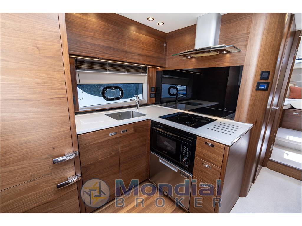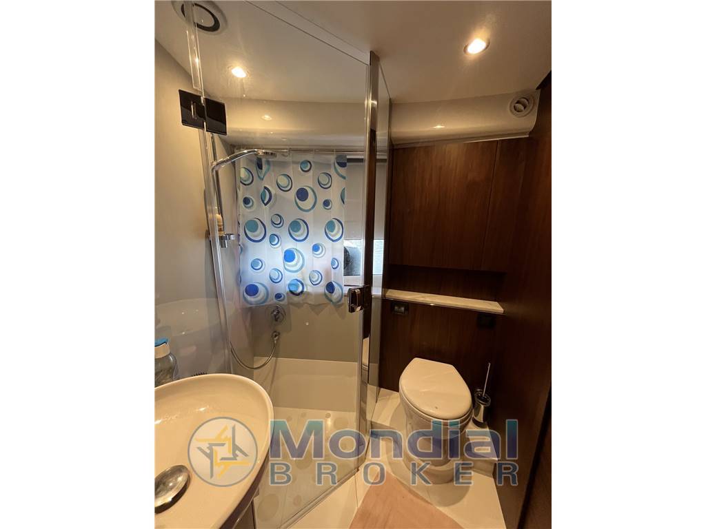 Notas internasCUCINA DI BORDO Fornello a gas a 3 zone con dispositivo di emergenza in caso di spegnimento fiamma (fornello in ceramica a 3 zone di serie su Open), Forno combinato microonde/convezione con grill, Lavello in acciaio inox con rubinetto miscelatore monoblocco, Frigorifero/congelatore a tutta altezza, Credenze, cassetti e armadietti, piano lavoro bianco, aria condizionata con 3 macchine. CABINA PATRONALE Letto matrimoniale con cassetti sotto-letto Guardaroba con ripiani Divano Armadi e cassetti Punti luce in cuccetta a soffitto e individuali CABINA OSPITI Letto matrimoniale con cassetti sotto-letto Botola su ponte con lucernario e tende oscuranti integrate Punti luce in cuccetta a soffitto e individuali Bagno con accesso giorno opzionale SALONE PONTE DI COPERTA Plancetta di poppa, ponte di cabina e passaggi sul ponte laterale in teak Verricello per ancora elettrico reversibile con controlli di posizione di prua e timone Ancora Delta a stivaggio automatico (20kg/110lb) con 40m di catena Ramponi, passacavi e corrimano in acciaio inox Faro telecomandato Porte scorrevoli con telaio in acciaio inox ad apertura tripla verso la cabina di comando Divano a forma di U e tavolo da pranzo Unità laterale con portabottiglie e bicchieri e frigorifero Tetto ad apertura elettrica Impianto stereo radio/MP3 con altoparlanti in salone e pozzetto Pavimento in legno Notas de la instrumentaciónGPS Ray Marine 90 potenza 25pilota automatico, chart plotter, flaps, elica di prua, Notas de armamentohart top soft top,passerella idraulica , tender lift cucina esterna con ghiacciaia, impianto stereo interno /esterno, copertura totale, garage per tender |