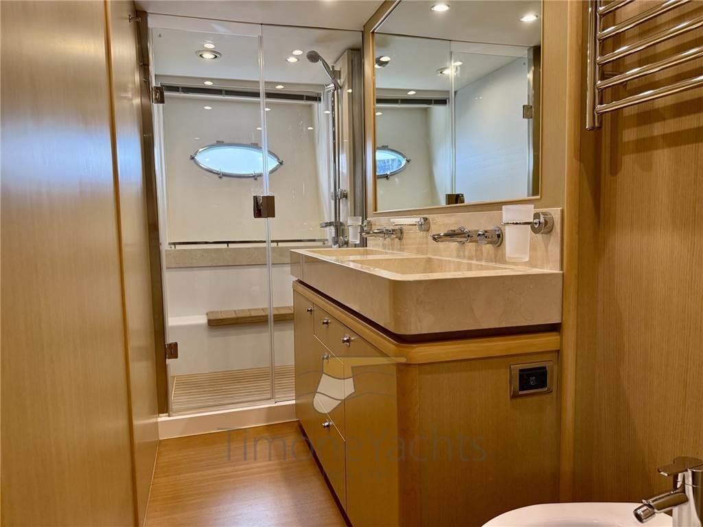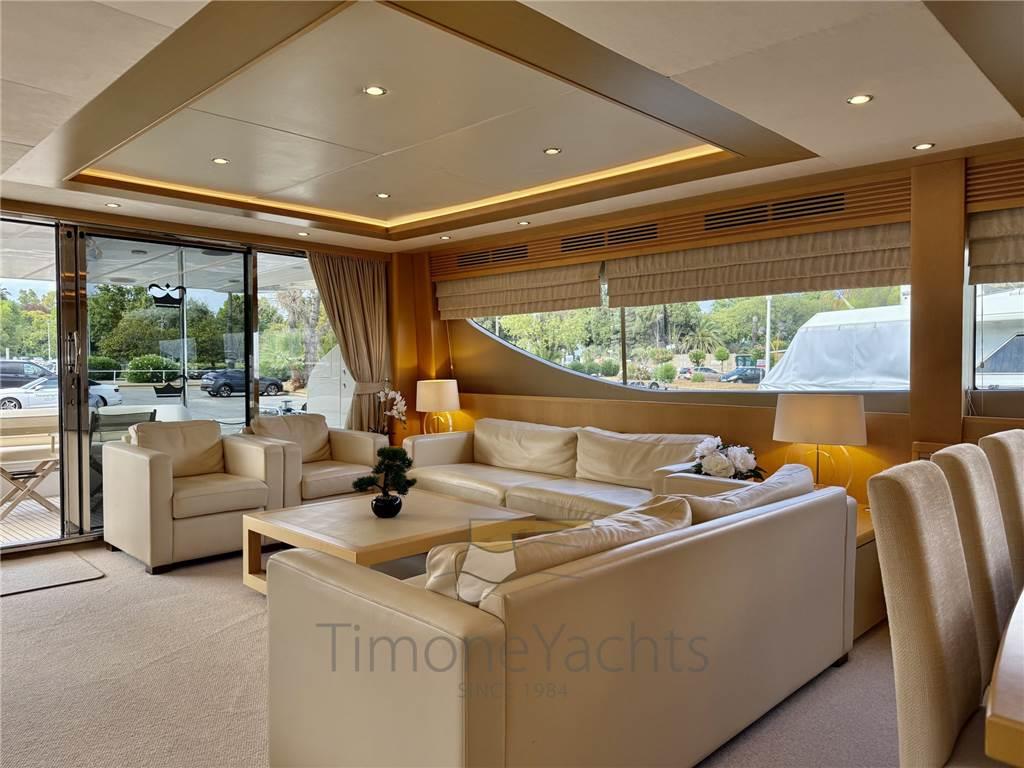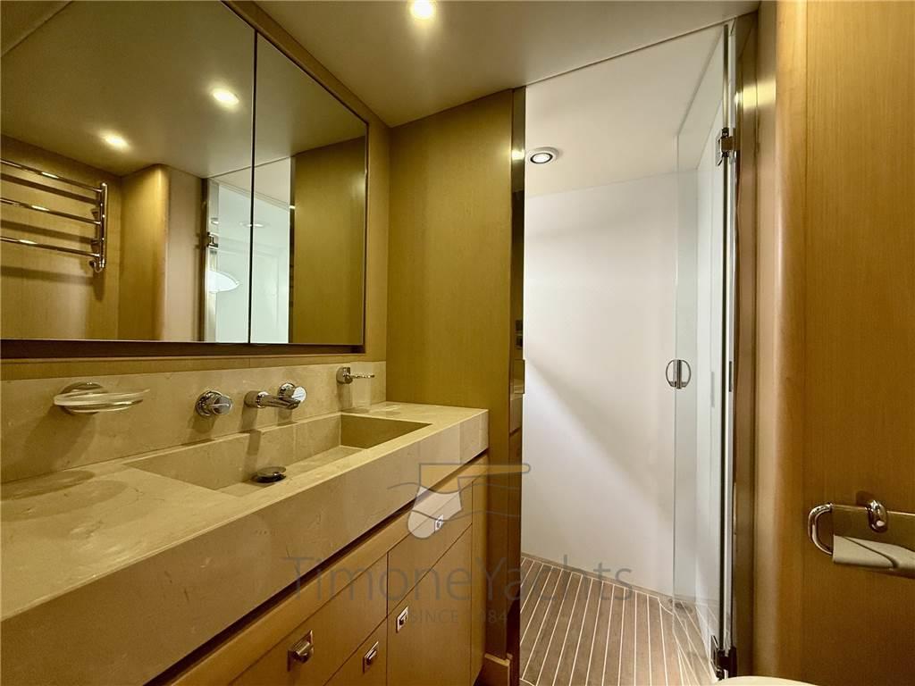 Notas internas- salone - bagno giorno - cucina separata - zona comando, con accesso alla cucina LOWER DECK: - armatoriale a tutto baglio, con bagno - vip a pria, con bagno - nr.2 cabine ospiti con letti gemelli, ambedue con bagno CREW: - nr.2 cabine doppie, letti incrociati - bagno crew Notas de la instrumentaciónAIS, Angolo barra, Antenna radar, Bussola, 3 Comando motori elettronico, 2 Computer di bordo, Contametri catena, Contamiglia (Dual station), Display, DSC vhf, Ecoscandaglio (Dual station Raymarine), 2 GPS (Raymarine), Luci di navigazione, Pilota automatico (Raymarine ST70+), Plotter (Raymarine), Plotter con antenna GPS, Radar (Dual station Raymarine), Radio VHF (Raymarine).Notas de armamentoAllestimento tecnico e di coperta:Allarme fumo/gas, 2 Allarme motore, Allarme sentina, Alternatore, Ancora, Auto-Trim (Hydraulic Bennett in Stainless steel), Camminamenti laterali in teak, Caricabatterie (Mastervolt Charmgemaster Plus), Doccia esterna, Doppia timoneria, Elica di poppa - stern thruster, Elica di prua - bow thruster, Flap idraulici, Gruette per tender su fly, Impianto antincendio, Indicatori Flaps, Lavaggio catena, Luci di cortesia, 2 Luci subacquee, Passerella (elettroidraulica), Piattaforma (elettroidraulica), 5 Pompa di sentina automatica, Ponte in teak, Porta ingresso, Porta laterale, Pozzetto Teak, Presa 220V banchina, Presa acqua banchina, Rollbar, Salpa Ancore Elettrico, Scaletta da bagno, Stabilizzatori (ABT Trac Hydraulic Fins), Tavolo pozzetto, Tromba, 2 Winch tonneggio di poppa, Winch tonneggio di prua. Dotazioni domestiche di bordo: Aria condizionata (doppio ciclo), BBQ/ Grill, Clima reversibile, Collegamento internet (5G Router), Dissalatore (IDROMAR 240 L/H), Impianto acque nere, Prese interne 12v, Prese interne 220v, Telecamera, Termovisore, 5 WC marino elettrico. Intrattenimento: Altoparlanti, DVD, Home Theater (Bose), Impianto TV, 4 Stereo, 3 TV (Samsung). Cucina ed elettrodomestici: Asciugatrice, Aspirapolvere centralizzato, Congelatore, Cucina, Fornello, Frigorifero esterno, Frigorifero interno, Ghiacciaia, ICE Maker, Lavastoviglie, Lavatrice, Microonde (Combi), Piastra in vetroceramica. Tappezzerie: Bimini, Copripozzetto, Cuscineria completa, Cuscineria di poppa, Cuscineria di prua, Cuscineria fly, Cuscineria Pozzetto. |