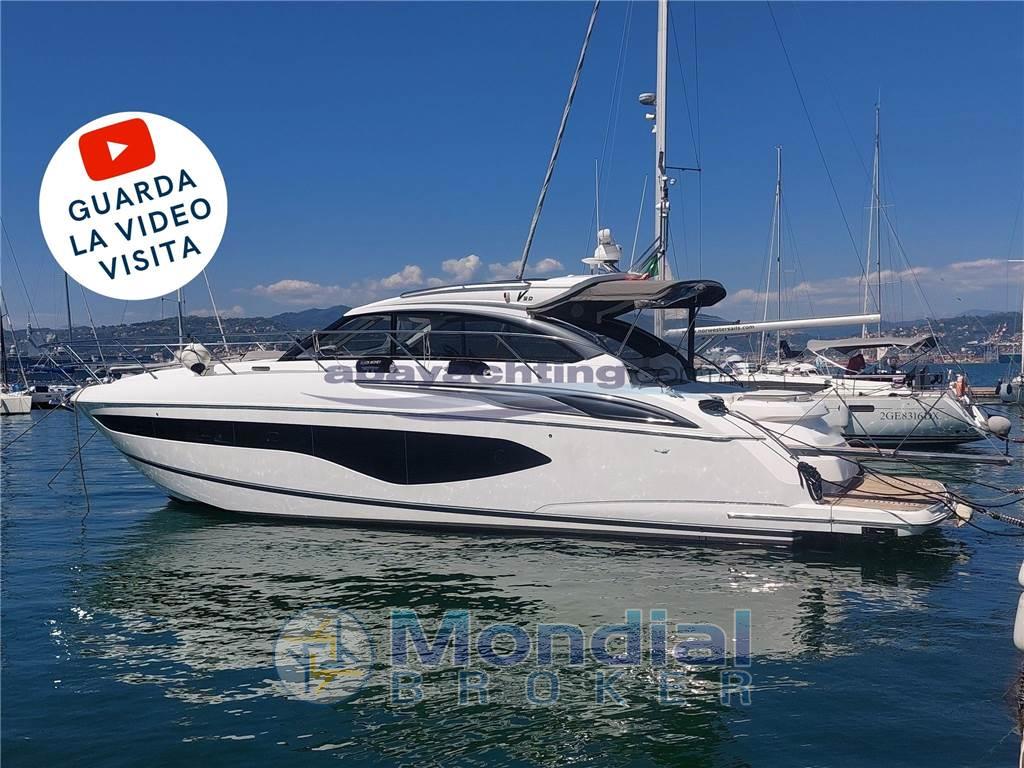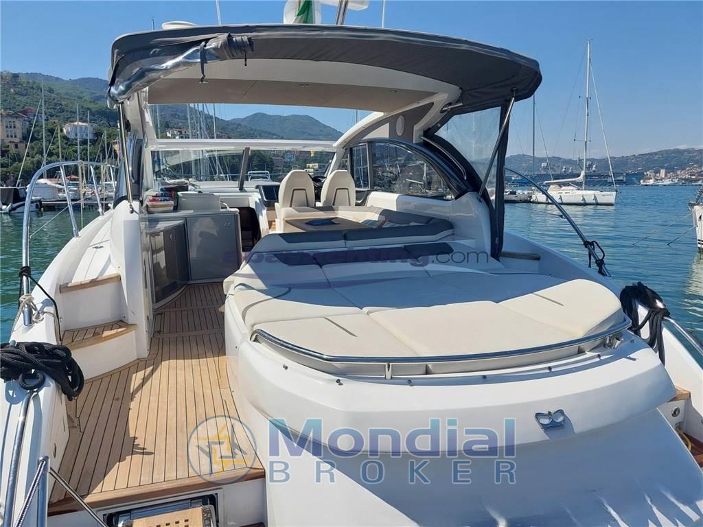 Notas de armamentoAllestimento tecnico e di coperta: Allarme motore (Volvo Garmin), Alternatore, Ancora (Ultra - Acciaio Inox), Autoclave (Par Max4 - Automatic Water system pump), Caricabatterie (Mastervolt - Chargermaster plus 24V/40A), Doccia esterna (Caldo/Freddo), Elica di poppa - stern thruster (Side power - SE 120/215 T), Elica di prua - bow thruster (Side power - SE 120/215 T), Faro orientabile, Flap elettrici, Garage per tender (Invaso con rulli di scorrimento e verricello di alaggio per tender fino a 3,25mt), Hard top (Soft Top - Elettrico a scorrimento), Impianto antincendio (Estintori + Leve taglio gasolio in sala macchine), Impianto Aria Compressa (Scoprega - Gonfiatore elettrico per tender Turbo Max kit 24V), Indicatori Flaps (Bennett), Lavandino nel Pozzetto, Luci di cortesia (Led), Luci subacquee, Passerella (Opacmare - Inox a scomparsa, estensibile e regolabile in altezza con tientibene), Piattaforma (Elettroidraulica abbattibile a poppa), Pompa di sentina automatica, Pompa di sentina elettrica, Pompa di sentina manuale, Porta ingresso (Scorrevole), Pozzetto Teak, Presa 220V banchina, Presa acqua banchina, Salpa Ancore Elettrico (Lewmar - Elettrico 24V 2000W con campana di tonneggio cime e telecomando wireless contametri), Scaletta da bagno (Inox a scomparsa nella spiaggetta di poppa), Selle per Tender, Tavolo pozzetto (Fisso in teak), Tavolo Salone Abbattibile, 2 Tromba (2 X Marco), Winch tonneggio di prua (Lewmar - Elettrico 24V 2000W con campana di tonneggio cime).