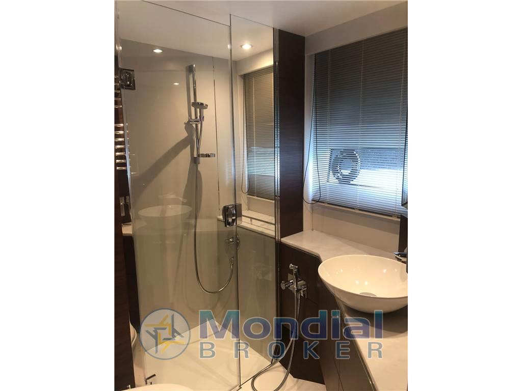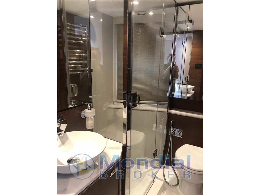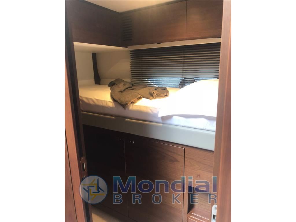 Notas de armamento3° stazione di guida in pozzetto, Elica di prua e di poppa a velocità variabile - Allestimento cabina marinaio - Cabina di dritta con letti singoli convertibili in matrimoniale elettricamente - Top cucina in Porcellaine white - Scafo bianco - Interni in noce satinati - Seakeeper 9 Gyro stabilizzatore - n.2 sgabelli per interni - Teak lungo i camminamenti laterali e a prua - n.2 winches elettrici a poppa - Upgrade generatore Onan 19 kW - Passerella telescopica elettroidraulica - Terza stazione di controllo nel pozzetto Tendalino elettrico nel pozzetto - Fabbricatore di ghiaccio - Luci subacquee di poppa (4 LUMISHORE SMX53 White) - Tetto apribile elettricamente nel salone - Stereo - Cabina di prua 32” HD LED TV - Cabina di dritta 24” HD LED TV - Upgrade cuscineria esterna in schiuma reticolata - Coperture esterne Sunbrella Grey - Bimini Top in Charcoal Grey Sunbrella Supreme - Zanzariere - Aria condizionata (90,000 BTU) - Aria condizionata cabina marinaio 6,000BTU - Bimini top elettroidraulico con luci regolabili - Upgrade tessuti interni - Upgrade per cuscini di arredamento e coperture letto - Cabina di sinistra con mobile al posto del secondo letto - Navisistem Antenna TV SAT Dome 65 cm - dissalatore SCENKER 100 l/H - Telecamera di poppa e in sala macchine -