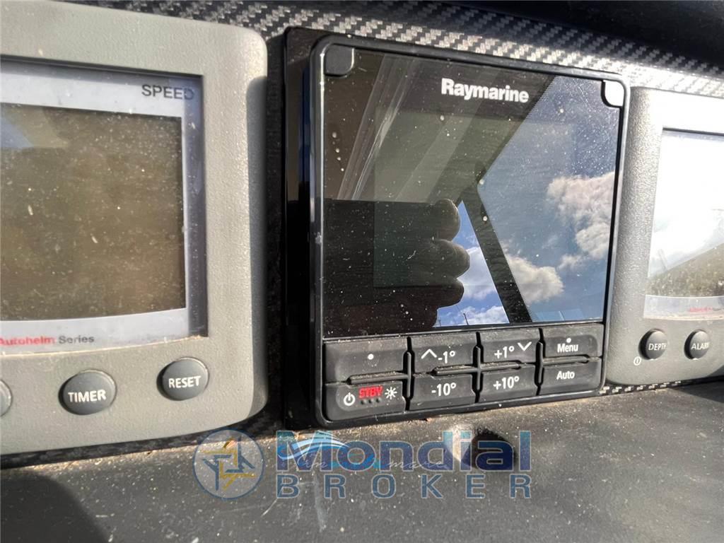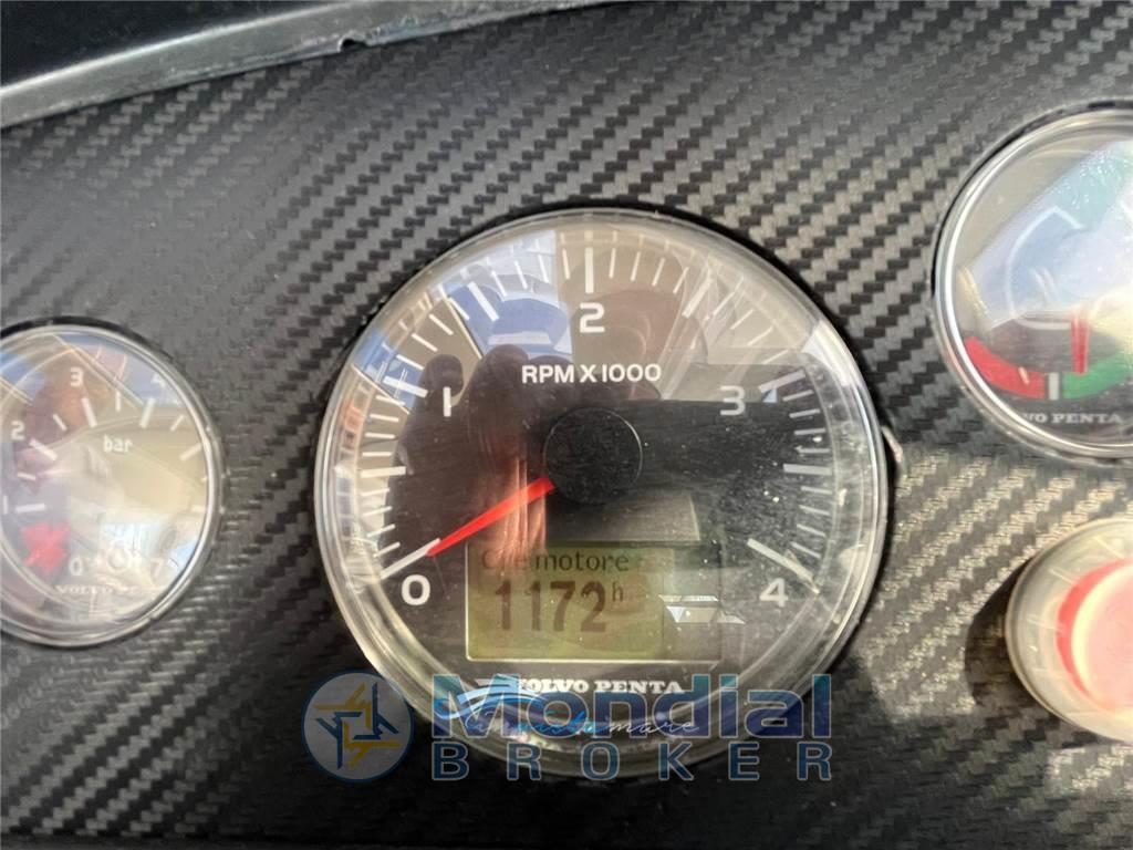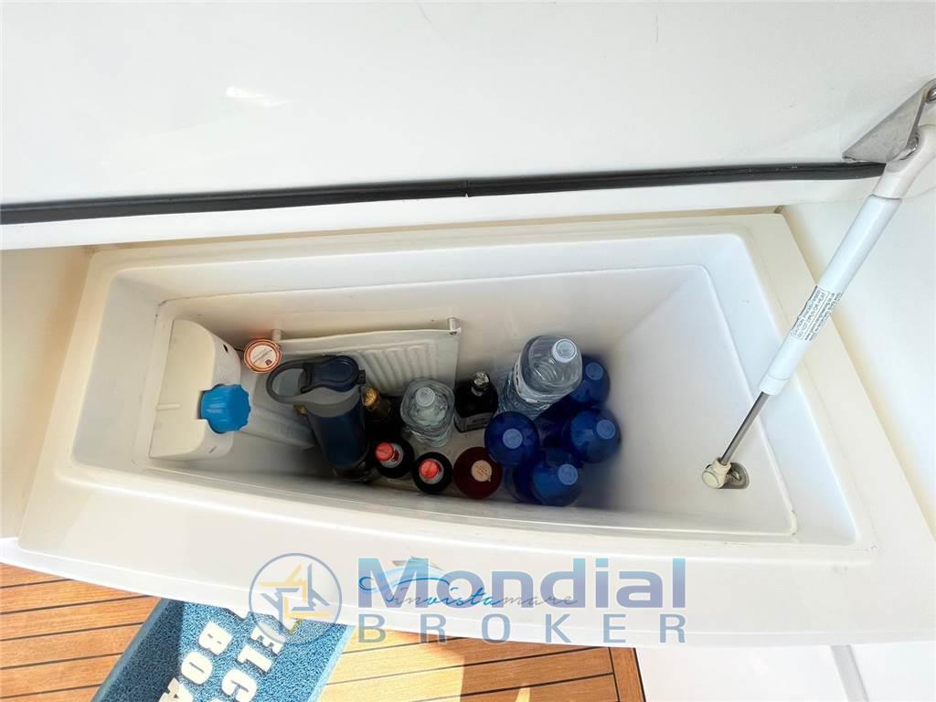 Notas internasNotas de la instrumentaciónAncora, Autoclave, Batterie, Bussola, Caricabatterie, Comando motori elettronico, Doccia esterna, Ecoscandaglio, Elica di prua - bow thruster, Flap idraulici, GPS (Garmin ultima generazione), Luci di cortesia, Passerella (a scomparsa), Piattaforma, Pilota automatico (Raymarine ultima generazione), Plotter con antenna GPS, Pozzetto Teak, Presa 220V banchina, Radar, Radio VHF, Salpa Ancore Elettrico, Tavolo pozzettoNotas de armamentoAria condizionata, Boiler, Cucina (interna ed esterna ad induzione), Cuscineria di poppa, Cuscineria di prua, Frigorifero esterno, Frigorifero interno, Impianto acque nere, Prendisole aggiunto (prua e poppa), Radio AM/FM, Telo copriconsolle, Tendalino (di poppa), TV, Tetto elettrico |