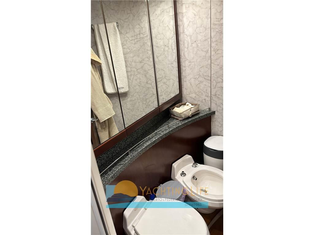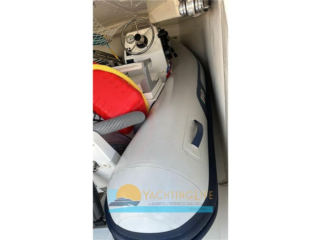 Notas de armamentoAltoparlanti, Antenna Satellitare TV, Aria condizionata, Boiler, Cassaforte, Congelatore, Cucina, Cuscineria completa, Decoder satellite, Digitale Terrestre, Dissalatore, Frigorifero esterno, Frigorifero interno, Impianto acque nere, Impianto TV, Inverter, Microonde, Pavimento interno in legno, Piastra elettrica, Piastra in vetroceramica, Prese interne 12v, Prese interne 220v, Riscaldamento, Serbatoio Acque Nere, Stereo, Teli copri finestra, Tenda Elettrica, Tendalino, 3 TV, 4 WC marino elettrico, Zattera di salvataggio