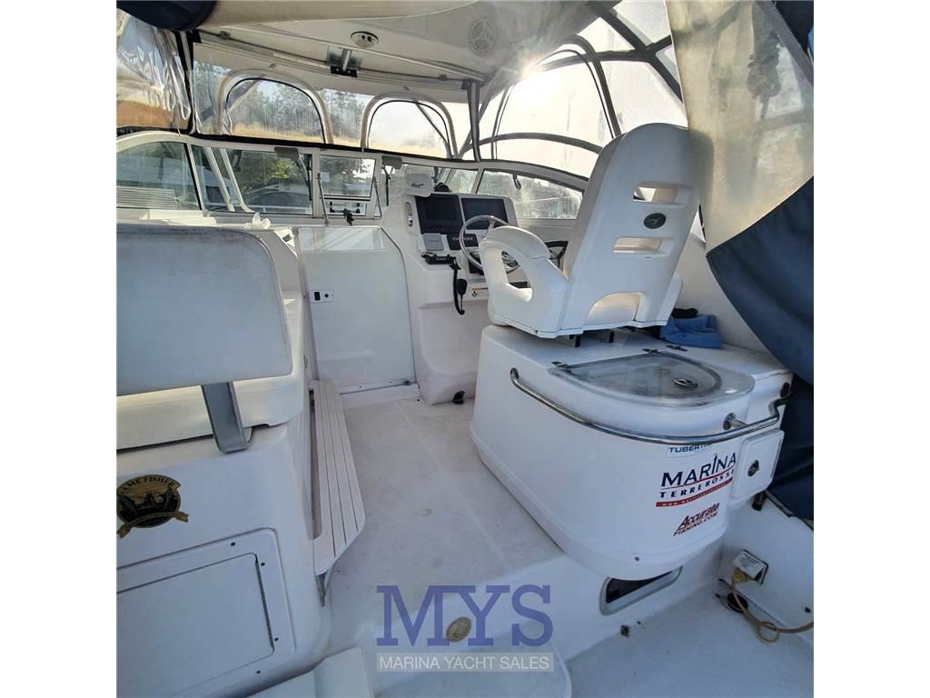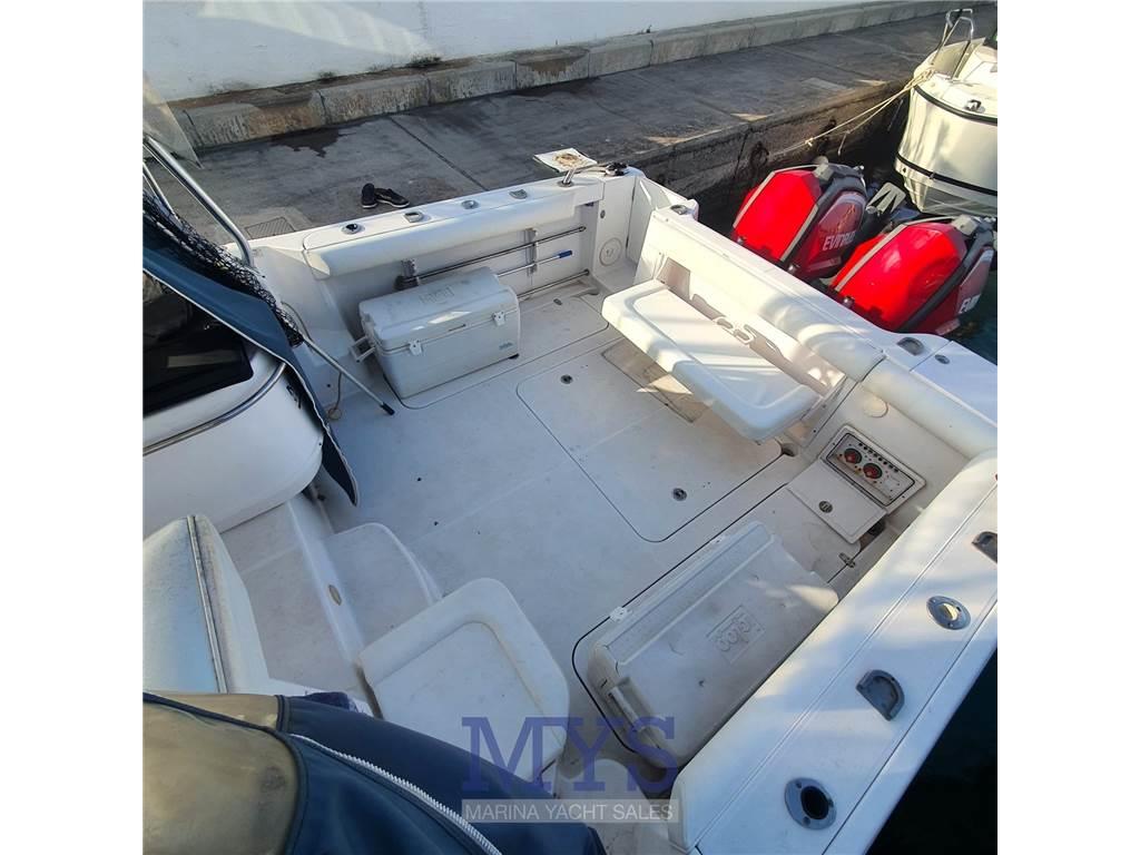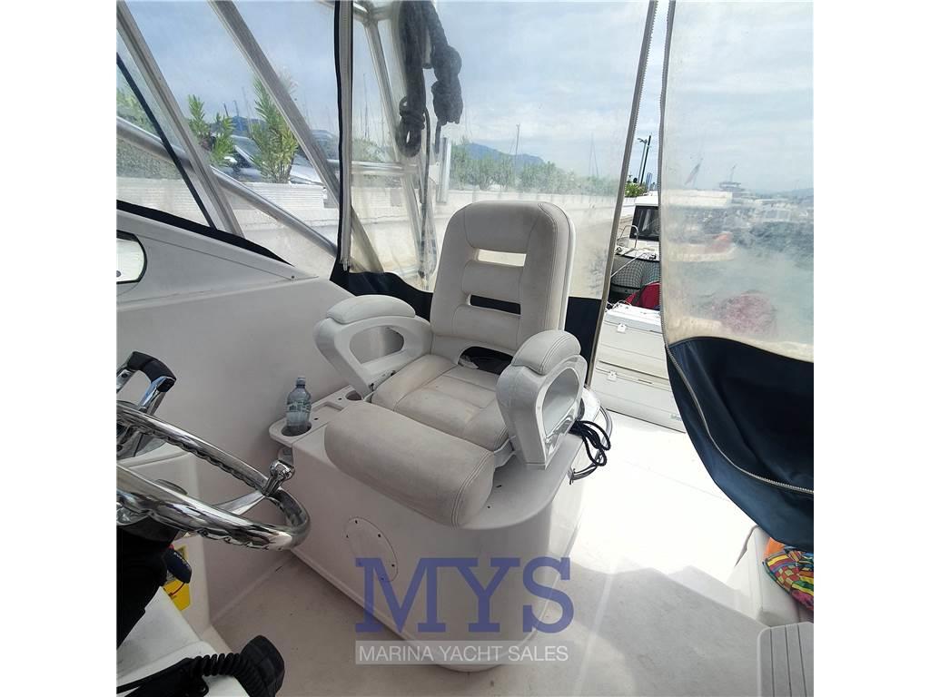 Notas internas1 BAGNO 1 Cucina completa di lavandino,fornello a gas,frigo e micronde 1 Bagno completo di lavabo,doccia e WC marino elettrico 1 Cabina matrimoniale a V di prua 1 Dinette trasformabile in letto Notas de la instrumentaciónAISAllarme motore Alternatore Altoparlanti Angolo barra Antenna radar Autoclave Batterie Boiler Caricabatterie Comando motori elettronico Ecoscandaglio Faro orientabile Flap idraulici GPS Ghiacciaia (PORTATILE) Impianto acque nere Indicatori Flaps Log Luci di cortesia Pilota automatico Plotter con antenna GPS Presa 220V banchina Radar Salpancora Elettrico Stereo Trolling Valve Tromba VHF Notas de armamentoAncoraCopripozzetto Doccia esterna Lavandino nel Pozzetto Pavimento interno in legno Portacanne Presa acqua banchina Serbatoio Acque Nere Scaletta da bagno T-Top Teli copri finestra Telo copriconsolle Tendalino Vasca del vivo Vasca pescato |