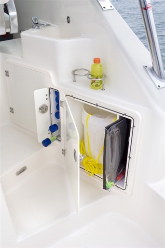 Para la comodidad del yate-calibre en un tamaño manejable, el 315 OS encaja el proyecto de ley. Su Yelmo cerrado, hardtop integral y ventilación parabrisas permitir visibilidad sin obstrucciones, protección contra la intemperie óptimo y comodidad durante los largos, dÃas de relax en el agua. Compañero amplio asientos en la zona de timón asegura el capitán podrá disfrutar de camaraderÃa mientras él o ella está en el timón o mientras se relaja en el muelle. La cabina expansiva con su peluche asiento amortiguado de popa ofrece espacio adicional para recibir a invitados o para relajarse al sol en un lugar remoto. Cruceros por igual y los pescadores apreciarán la proximidad del enfriador 38 galones aislado en la base del asiento de popa. De pesca, OS 315 caracterÃsticas un 32-galón vivero, Wilo RS tackle cajones y almacenamiento (suficientemente grande para un cubo neto de reparto!) en la bajada de timón y una portilla magnÃficamente ubicado para un acceso inmediato al techo montan almacenamiento de barra en la litera mediados de cabina. |
