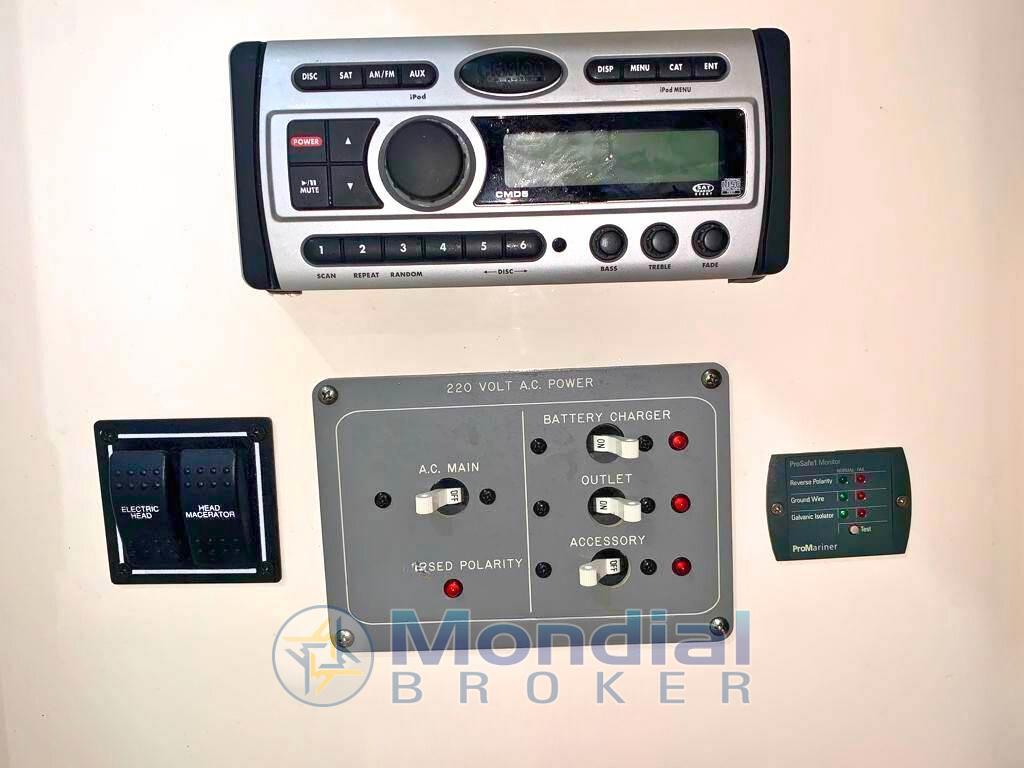 Notas de armamento4 Altoparlanti (JL con unità principale Fusion), Boiler (bivalente), Cuscineria completa (Nuova), Cuscineria Pozzetto (Nuova), Frigorifero esterno (Con batteria dedicata), Impianto acque nere, 4 Portacanne, Prendisole aggiunto, Radio AM/FM, Serbatoio Acque Nere, Stereo, Teli chiusura T-Top (trasparente), Telo copriconsolle, Telo coprisedile, 2 Tendalino (Prua e Poppa), Vasca del vivo (A poppa), 2 Vasca pescato (Pozzetto), WC marino elettrico