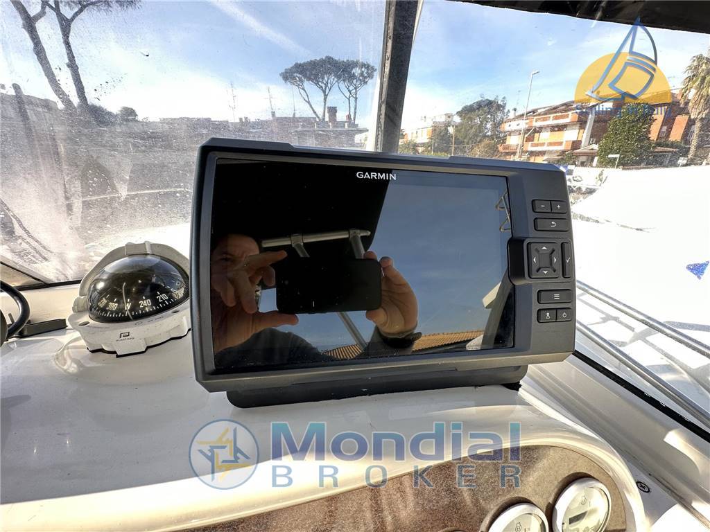 Notas internas- Prese interne 12v - Prese interne 220v - WC chimico - Cucina - Fornello Notas de la instrumentación- Gps Garmin 10 " con sonda garmin fino a 500mt- Vhf - Bussola - Comando motori elettronico - Computer di bordo - Contamiglia - DisplayEcoscandaglioGPS (Garmin) - Plotter con antenna GPS (Garmin)Radio - VHF - Sedile Copilota - 2 batterie - caricabatterie - salpa ancora elettrico - flap elettrici Notas de armamento- Dotazioni di sicurezza entro 6 miglia- Accessori da Pesca - 10 x Portacanne - Vasca del vivo Tappezzerie - Cappottina - Cuscineria completa - Cuscineria di prua - Cuscineria Pozzetto - Telo copriconsolle - Tendalino poppa nuovo - Tendalino a prua con doppia copertura t-top bianco e nera - tavolo pozzetto |