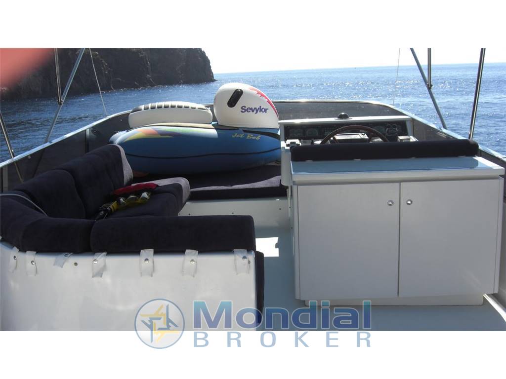 Notas internasArmatoriale a centro barca con cabina armadio e bagno con doccia; Cabina Vip con entrata dalla dinette con bagno; Due cabine ospiti con letti in piano, ognuna con bagno; Cabine comandante e marinaio a prua con bagno in comune. Interni in ciliegio. Salone a L con divani contrapposti, mobile tv, tavolo per 10pax; Plancia di comando a tutto baglio. Cucina completa di lavastoviglie e lavatrice, frigo, freezer e forno.