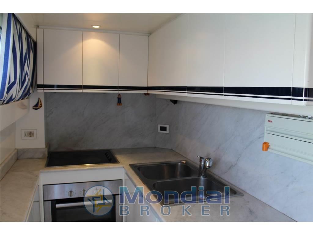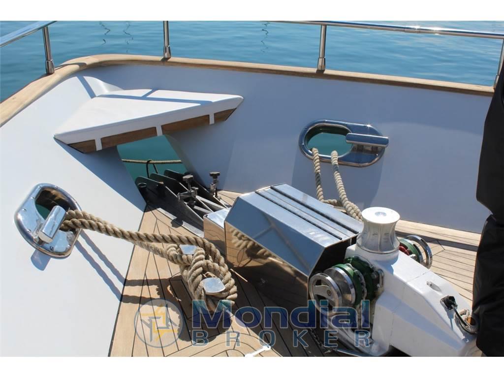 Notas internasAlloggio equipaggio per 3 in due cabine con servizi. Notas de la instrumentaciónGPS/Plotter Geonav e Raymarine - ecoscandaglio - radar Furuno - pilota automatico - VHF.Notas de armamentoElica di prua e di poppa idrauliche - terza stazione di comando a poppa - gruppi elettronici Onan 16 kW e Kohler 12 kW - pedana di poppa maggiorata con gruetta per tender - tender idrogetto - aria condizionata - dissalatore - TV LCD - antenna TV - antenna SAT TV SeaTel - frigo acciaio in cucina - freezer - piano cottura elettrico 4 fuochi - lavatrice Miele - ice-maker - mobile bar sul fly con lavello, grill e frigo. |