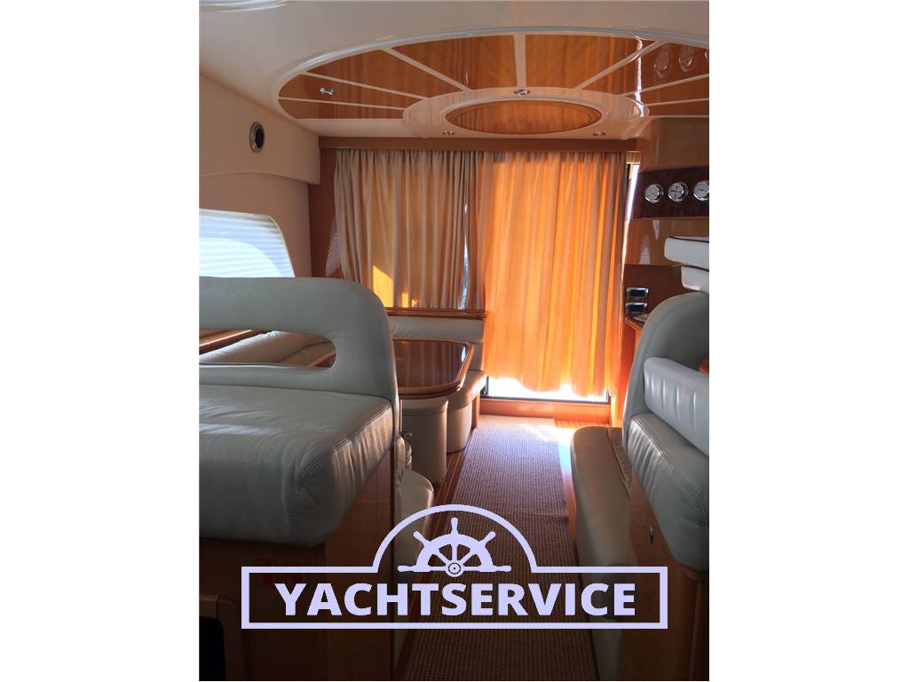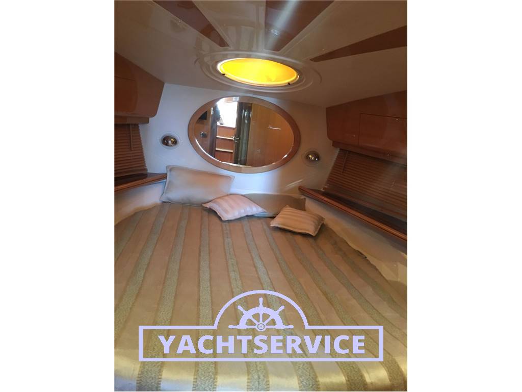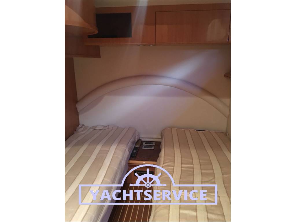 Notas internasMotorizzazione Caterpillar 2x510 hp, 650 ore di moto. 3 cabine e 2 bagni + cabina marinaio con wc. Divani in pelle bianca, calpestio interno in teak filettato acero bianco, teak in pozzetto esterno + plancetta di poppa. Carena a zero effettuata recentemente, barca veramente bella! Consigliamo una visita a bordo. Miglior prezzo sul mercato per un fly di 15 mt così conservato. Notas de la instrumentaciónElica di manovra sia a prua che a poppa (bow thrust e stern thrust), elettronica tutta Raymarine, eco, gps, plotter, autopilota, vhf, contametri catena, bimini sul fly, passerella idraulica bioinox, aria condizionata C/F in ogni ambiente, 1 asse e 2 eliche di rispetto, chiusura totale pozzetto, scarichi silenziati, tv lcd in ogni stanza più dinette, n. 3 frigoriferi, impianto illuminazione a led. |